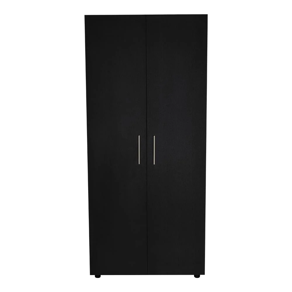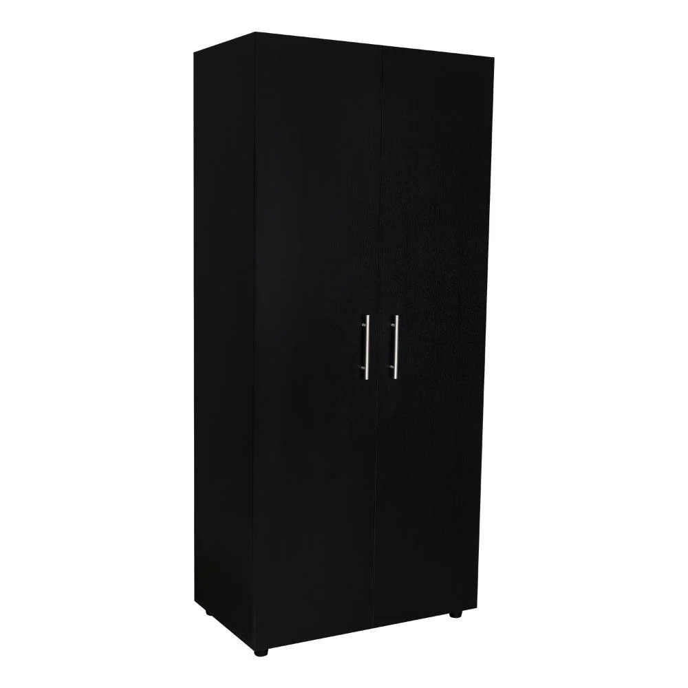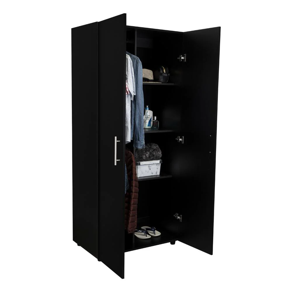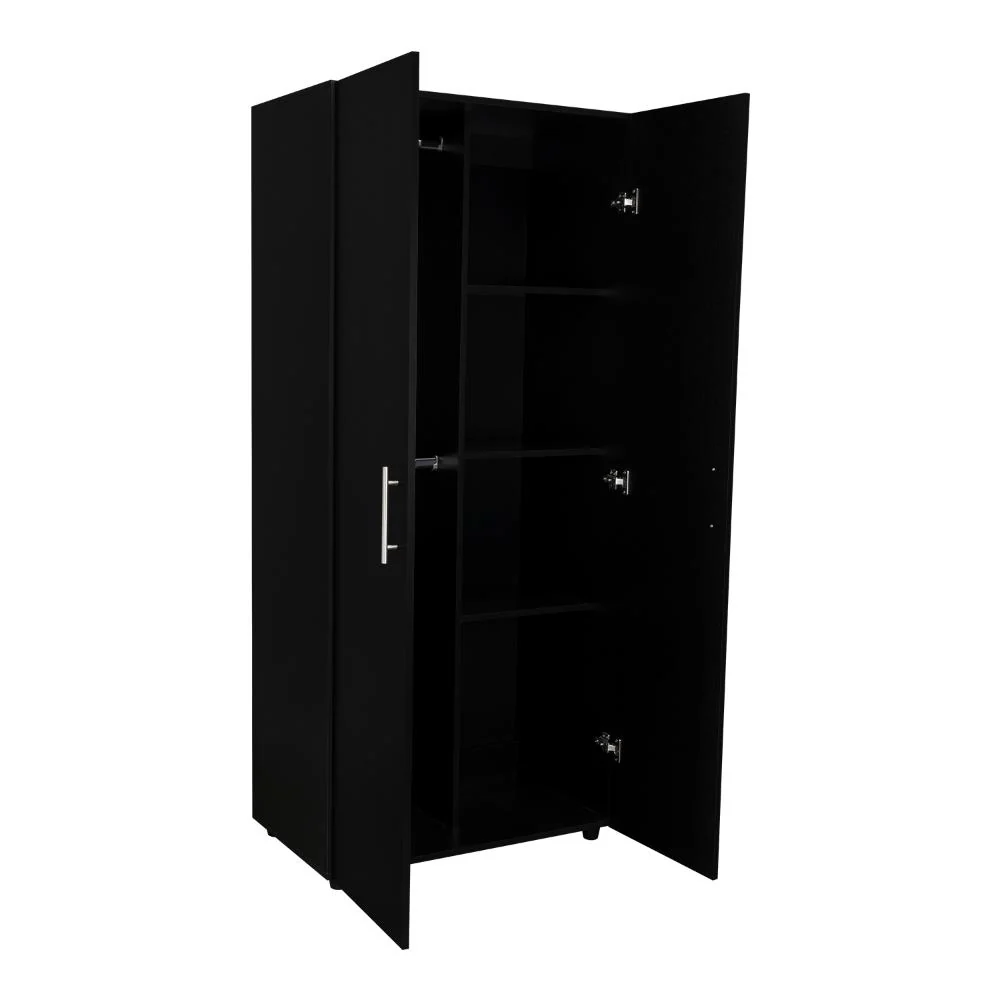 Closet, con 2 puertas abatibles, 2 tubos para colgar prendas, y 3 entrepaños para organizar.
