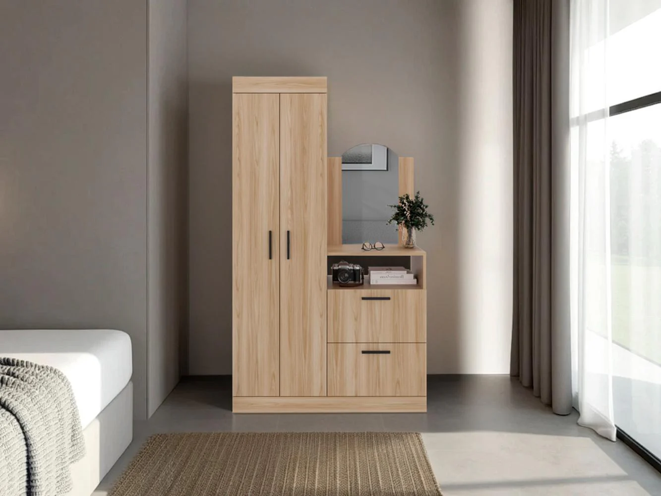 Closet, moderno moderno y unico, 3 puertas abatibles, colgador para ropa, 1 cajón e incluye espejo.