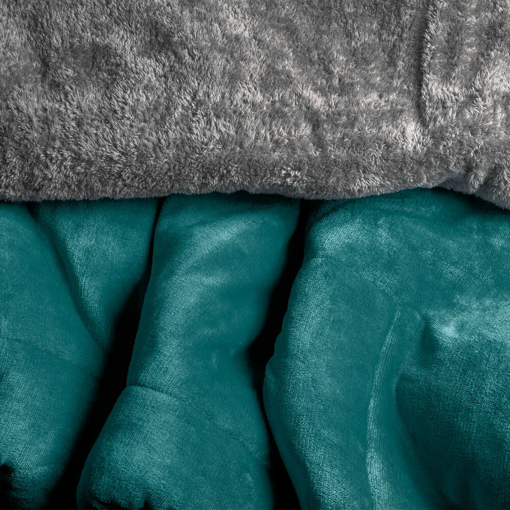 Cobija Invernal Turquesa doble faz, para cama Queen y King. De textura suave Beauty Soft y su segunda vista de borrega premium. Te brinda máxima calidez y suavidad, y le da un toque vibrante a tu habitación.