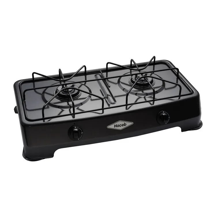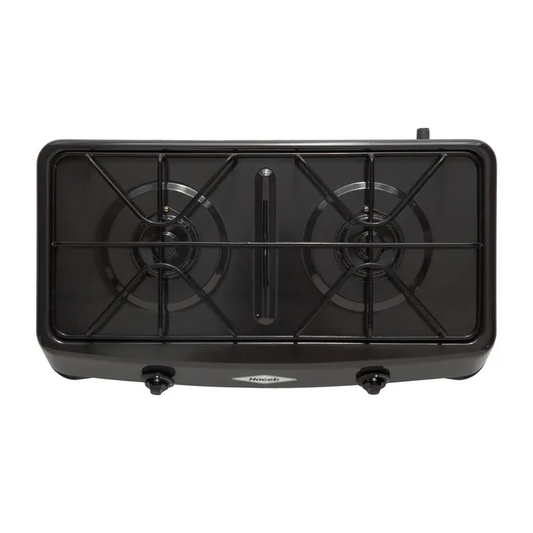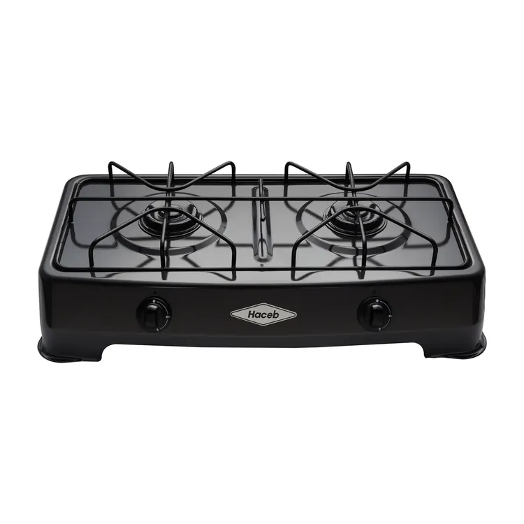 Cocineta HACEB de 2 puestos a gas propano. Cocina de manera segura y eficiente con dos quemadores semirápidos para hacer tus mejores recetas en casa, puedes controlar los niveles de temperatura requerida, parrillas antideslizantes que brindan mayor estabilidad y zona de encharque para una mejor limpieza. ¡Compra ya, elige HACEB!