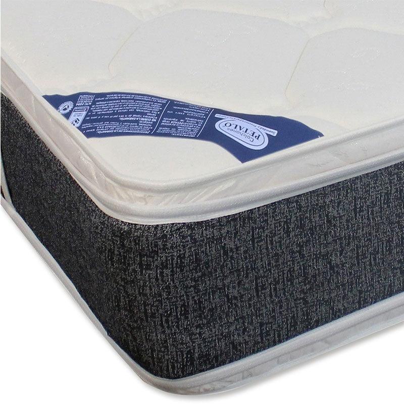 Unidad resortada : Fabricada con resorte en espiral (7 vueltas) de calibre 13 boca de 8.0 en acero 1070 de alto carbono. Los resortes están unidos entre sí por alambre espiral con alto contenido de carbono ofreciendo mayor resistencia para que el cuerpo se apoye anatómicamente. Marco en varilla de acero calibre 7, y laterales calibre 9 que permiten mayor dureza y estabilidad sin que por exceso de uso pueda disminuir la vida útil de la estructura. Por su gran cantidad de resortes tiene excelente resistencia y dureza, Cada resorte está reforzado en su interior con un cilindro de polyexpanded con las siguientes características: