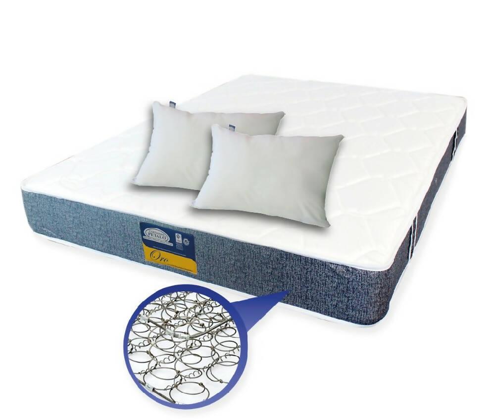 Unidad resortada : Fabricada con resorte en espiral de calibre 13 boca de 8.0 en acero 1070 de alto carbono. Los resortes están unidos entre sí por alambre espiral con alto contenido de carbono ofreciendo mayor resistencia para que el cuerpo se apoye anatómicamente. Marco en varilla de acero calibre 7, y laterales calibre 9 que permiten mayor dureza y estabilidad sin que por exceso de uso pueda disminuir la vida útil de la estructura. Por su gran cantidad de resortes tiene gran resistencia y dureza.