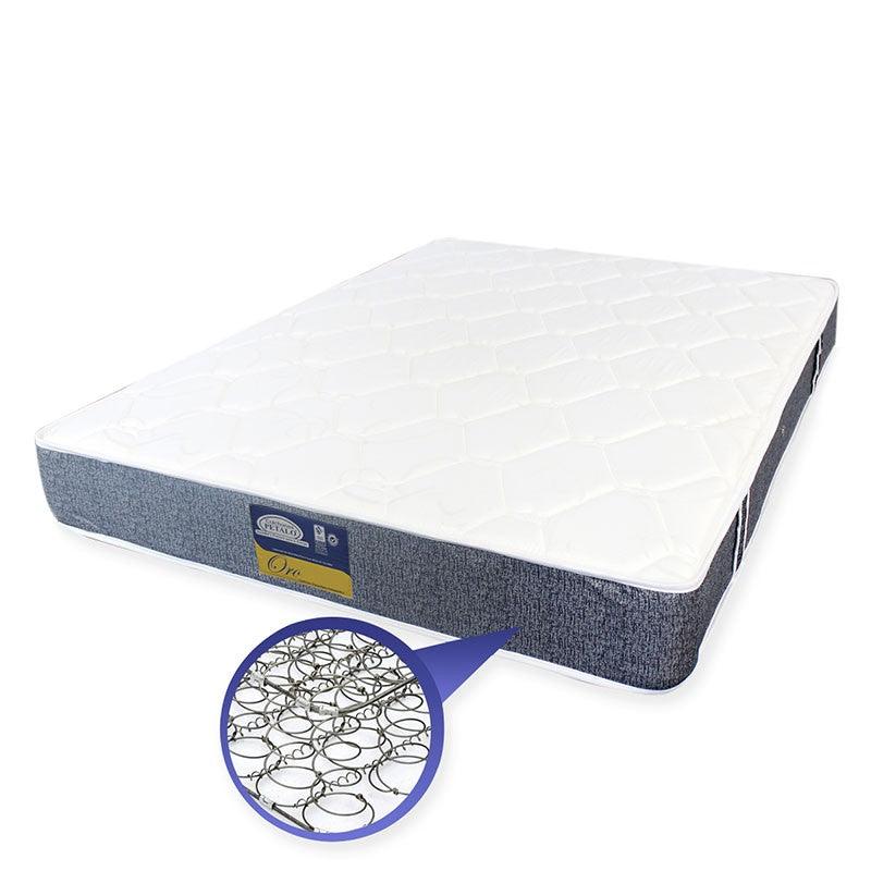 Unidad resortada : Fabricada con resorte en espiral de calibre 13 boca de 8.0 en acero 1070 de alto carbono. Los resortes están unidos entre sí por alambre espiral con alto contenido de carbono ofreciendo mayor resistencia para que el cuerpo se apoye anatómicamente. Marco en varilla de acero calibre 7, y laterales calibre 9 que permiten mayor dureza y estabilidad sin que por exceso de uso pueda disminuir la vida útil de la estructura. Por su gran cantidad de resortes tiene gran resistencia y dureza.