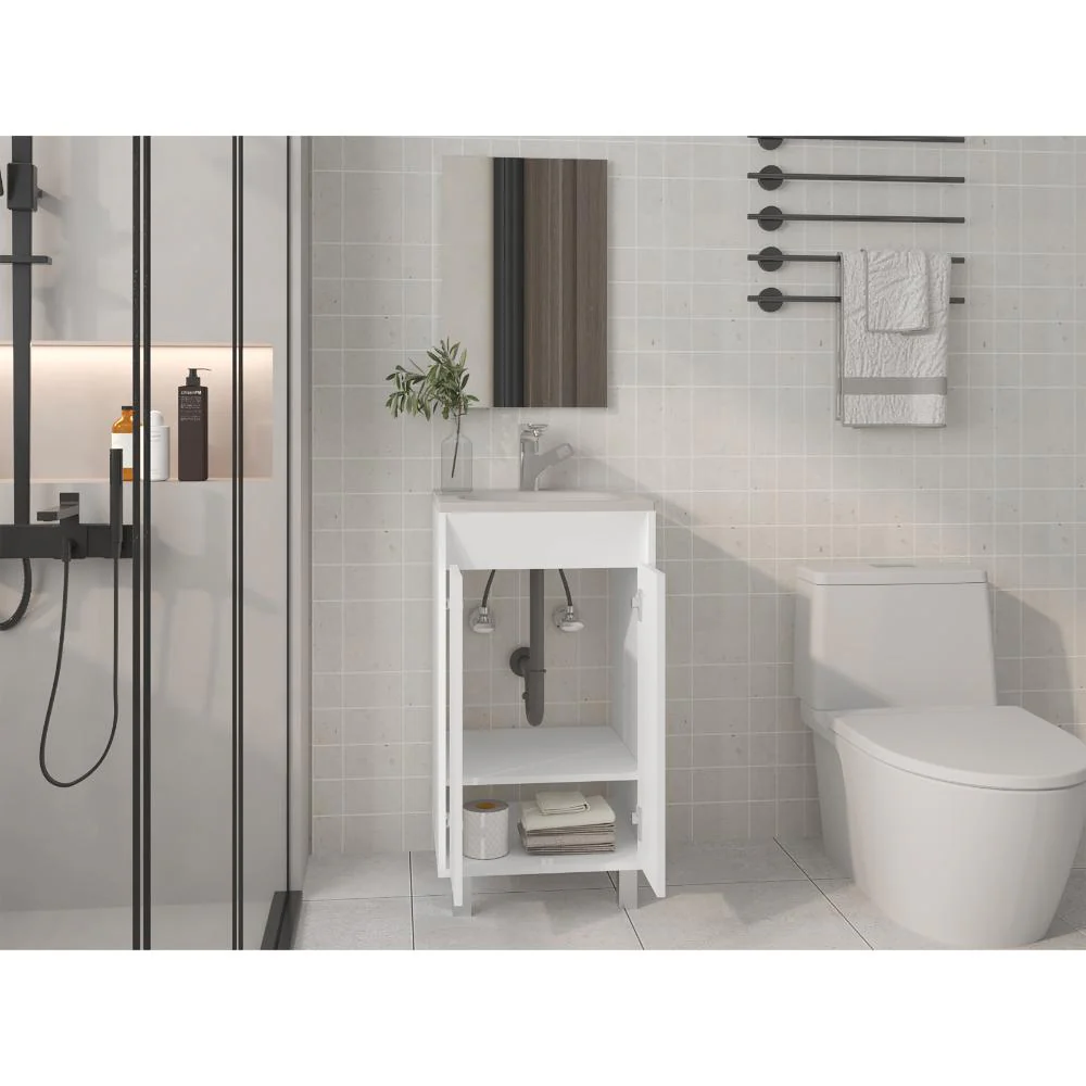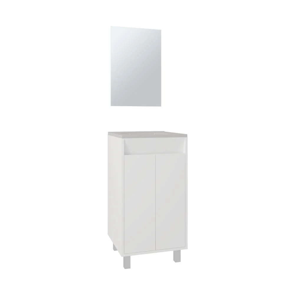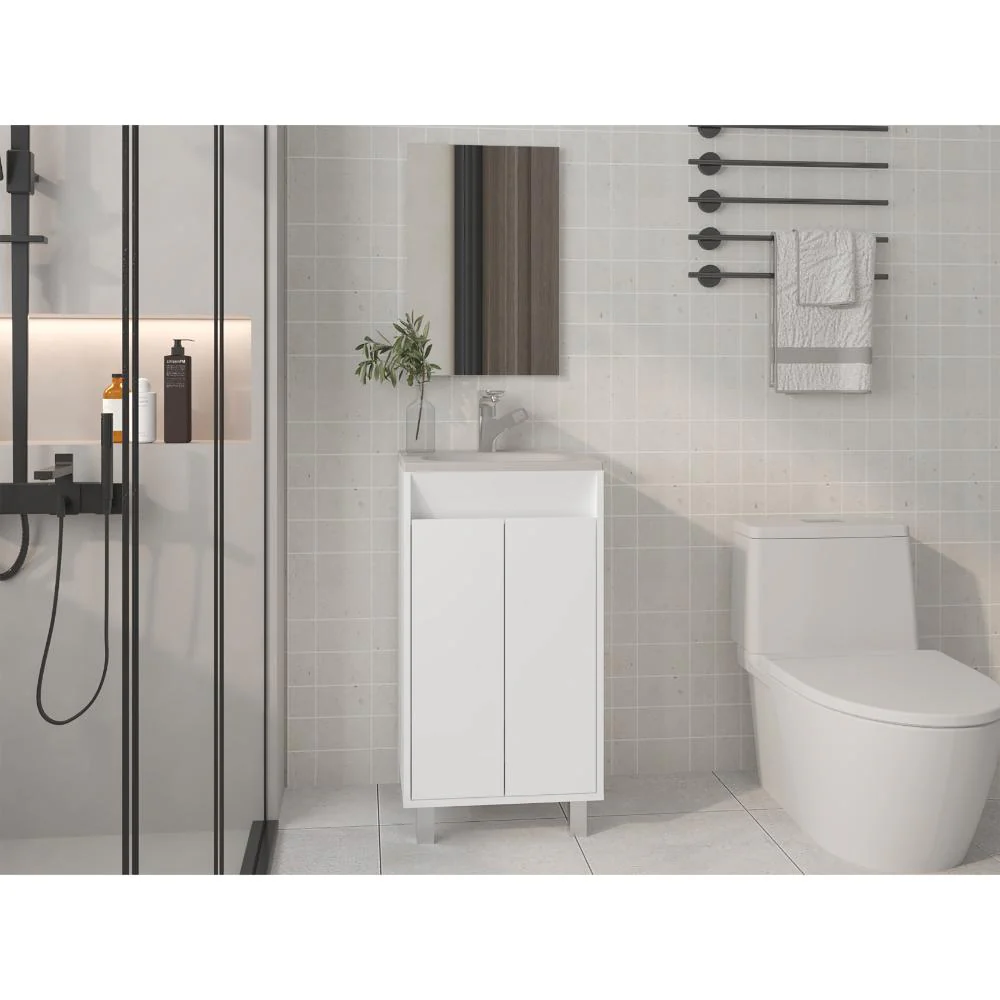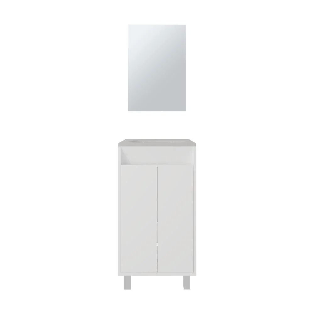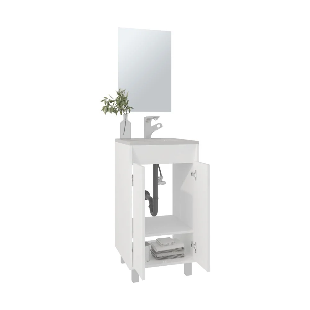 Mueble Lavamanos, cuenta con 2 puertas abatibles, 1 entrepaño y 4 patas metálicas + Espejo