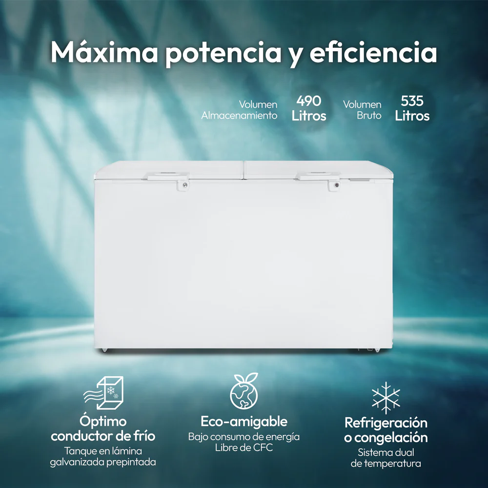 El Congelador Horizontal Challenger CH 396 es la solución ideal para quienes buscan un almacenamiento eficiente y seguro de alimentos. Con una capacidad de 535 litros brutos y 490 Litros de Almacenamiento, este modelo es perfecto para negocios comerciales o para el hogar, permitiendo conservar grandes cantidades de productos congelados. Su diseño horizontal facilita el acceso a los alimentos, mientras que su color blanco se adapta a cualquier entorno.