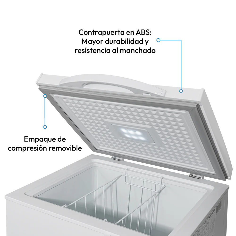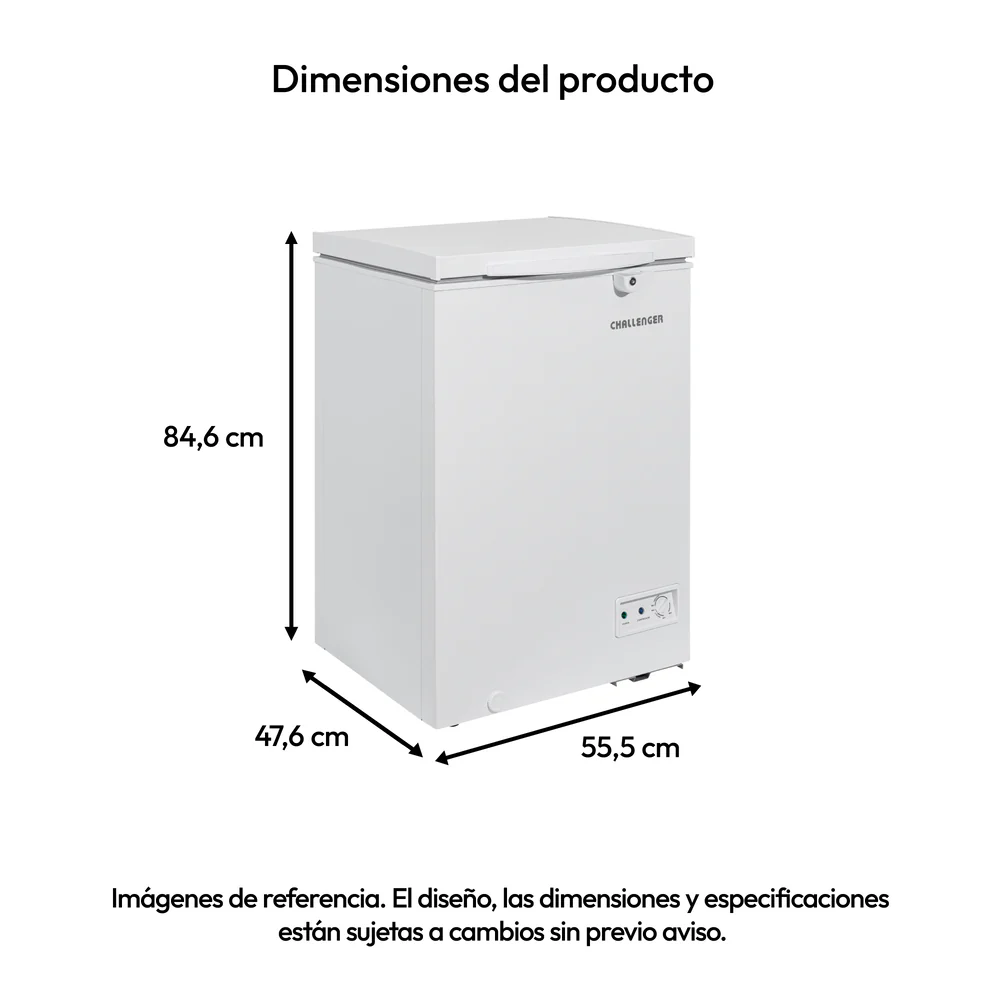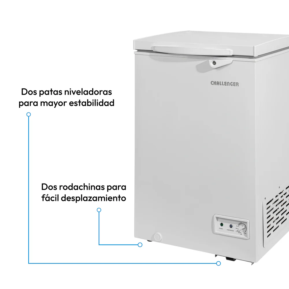 El Congelador Horizontal Challenger CH 100 es la solución ideal para quienes buscan maximizar el espacio de almacenamiento de alimentos. Con una capacidad bruta de 97 litros, este congelador ofrece un amplio volumen para conservar tus productos congelados de manera eficiente. Su diseño horizontal permite un acceso fácil y cómodo, facilitando la organización de tus alimentos.