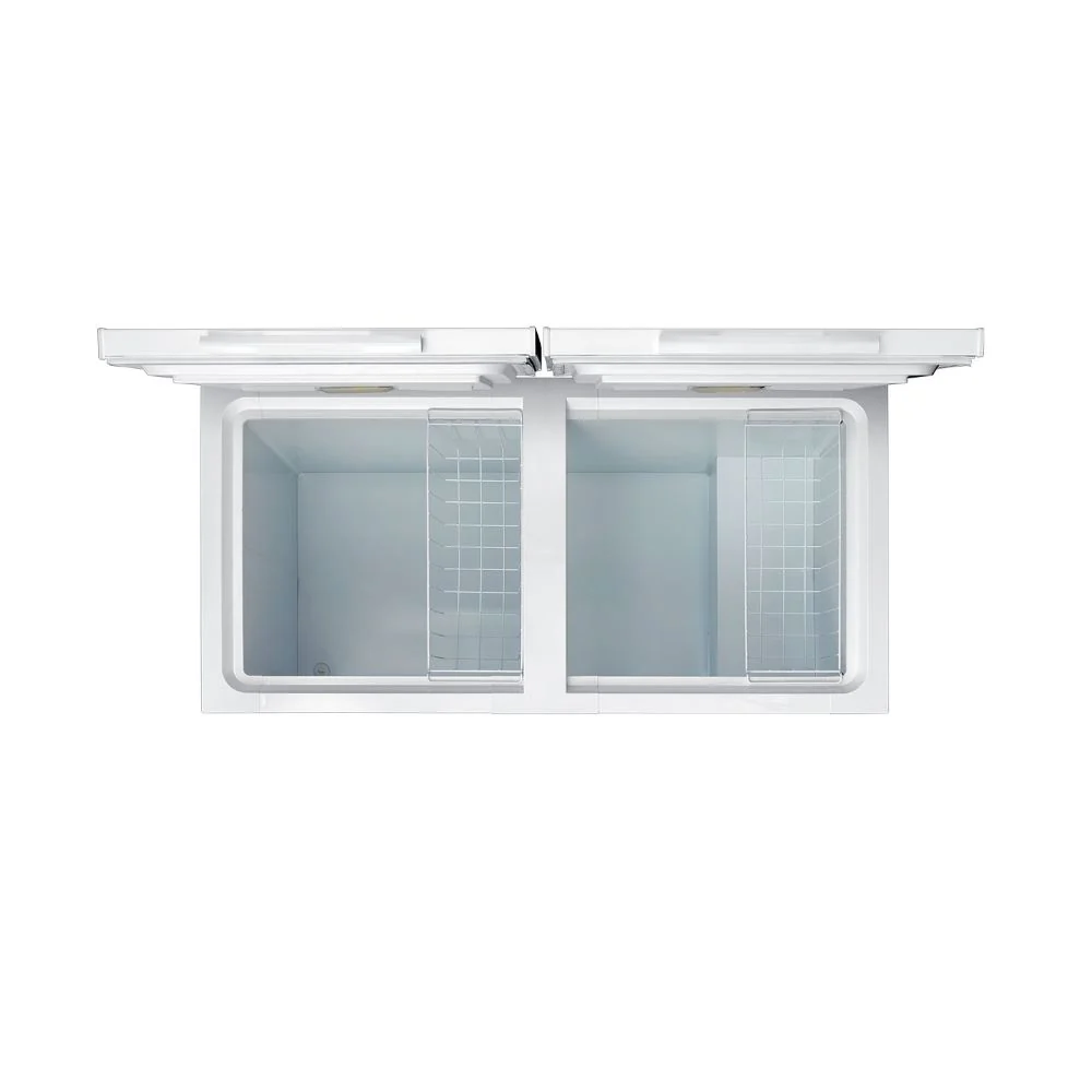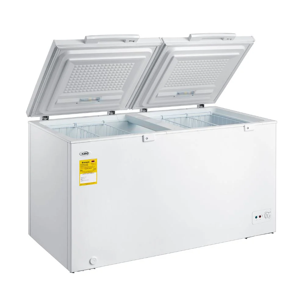 Congelador horizontal DUAL con capacidad para que almacenes tus alimentos y se mantengan frescos. Tiene temperatura ajustable según tu necesidad y con su función 4 en 1 que refrigera, conserva, pre congela o congela. Además cuenta con ruedas para un fácil desplazamiento, iluminación LED, sistema de seguridad con llave en las dos puertas y 4 canastillas removibles de alambre.