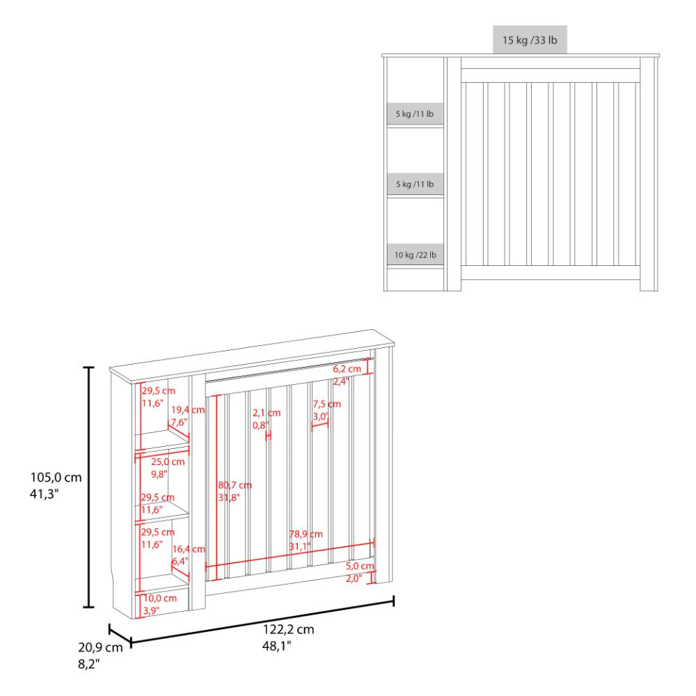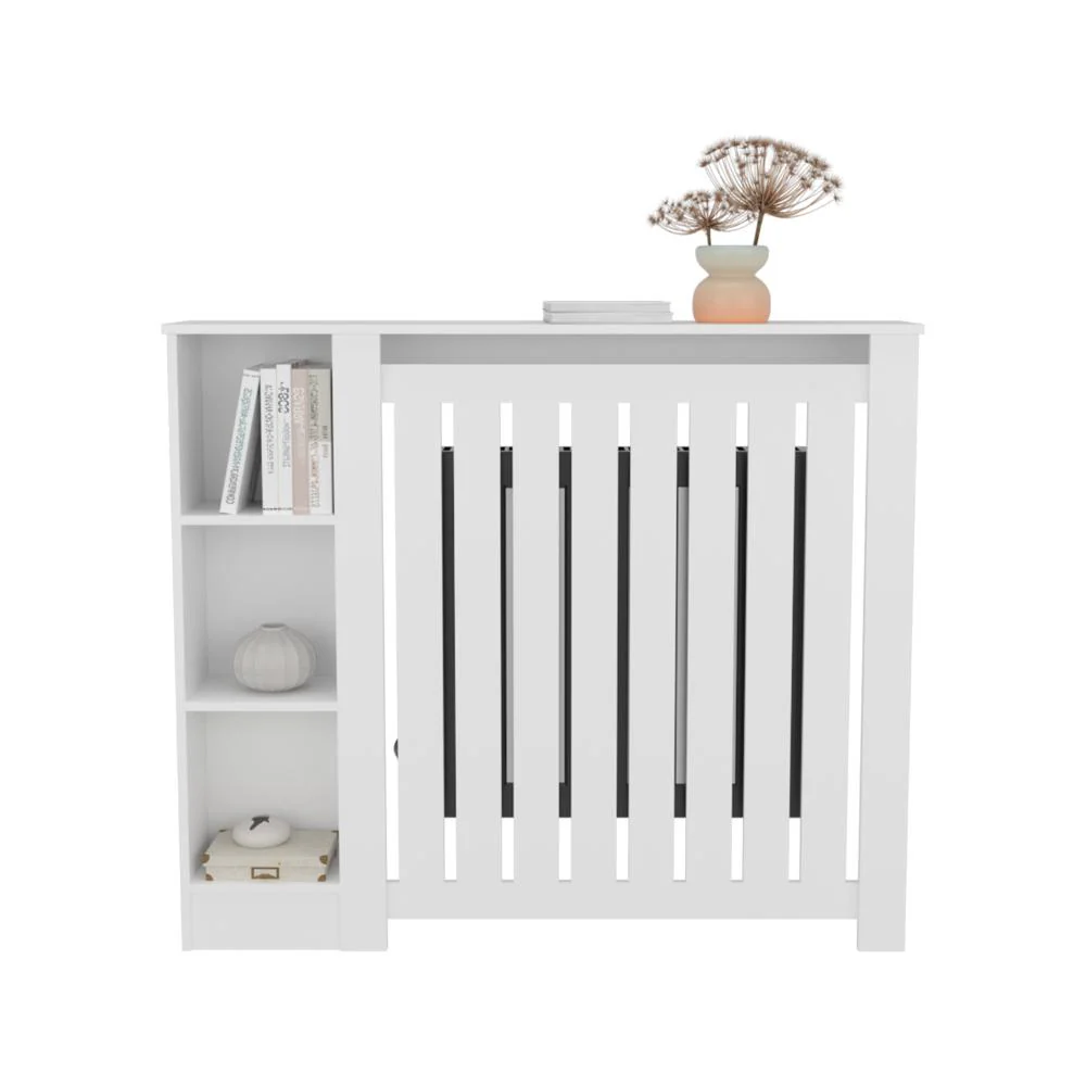 Cubierta para Radiador, con listones que permite la circulación del calor, cuenta con espacio para colocar objetos decorarivos y es de facil armado