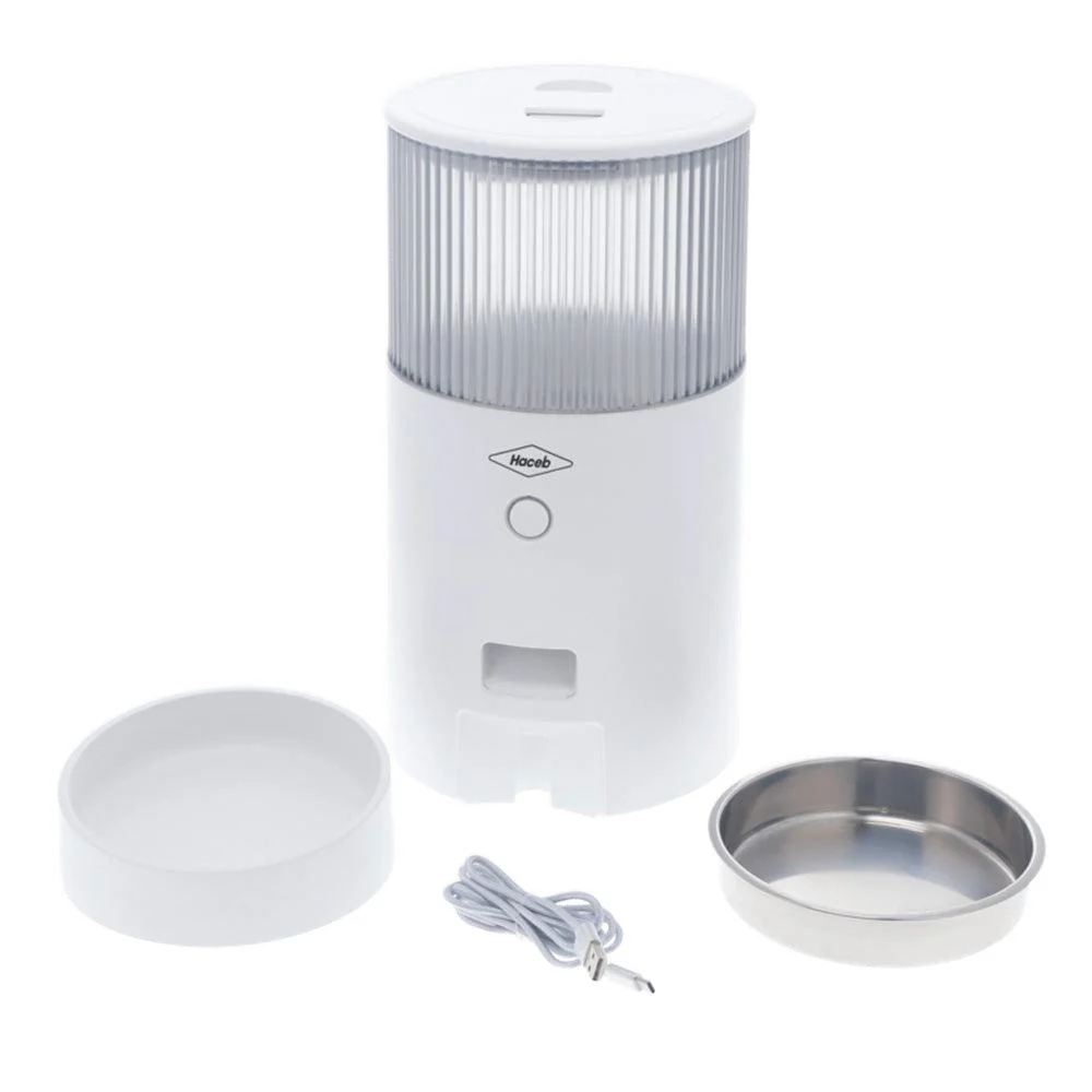 Cuida la alimentación de tu mascota, incluso cuando no estés en casa, con el Dispensador de Alimentos Haceb puedes hacerlo remotamente conectándote desde tu celular.