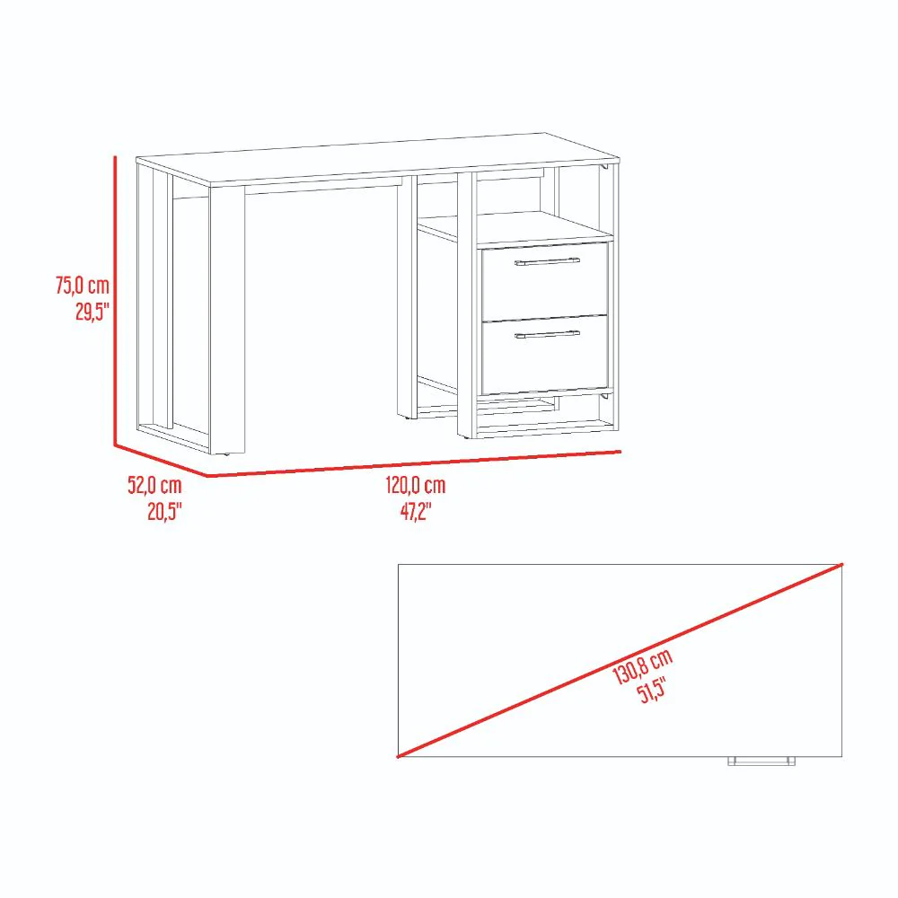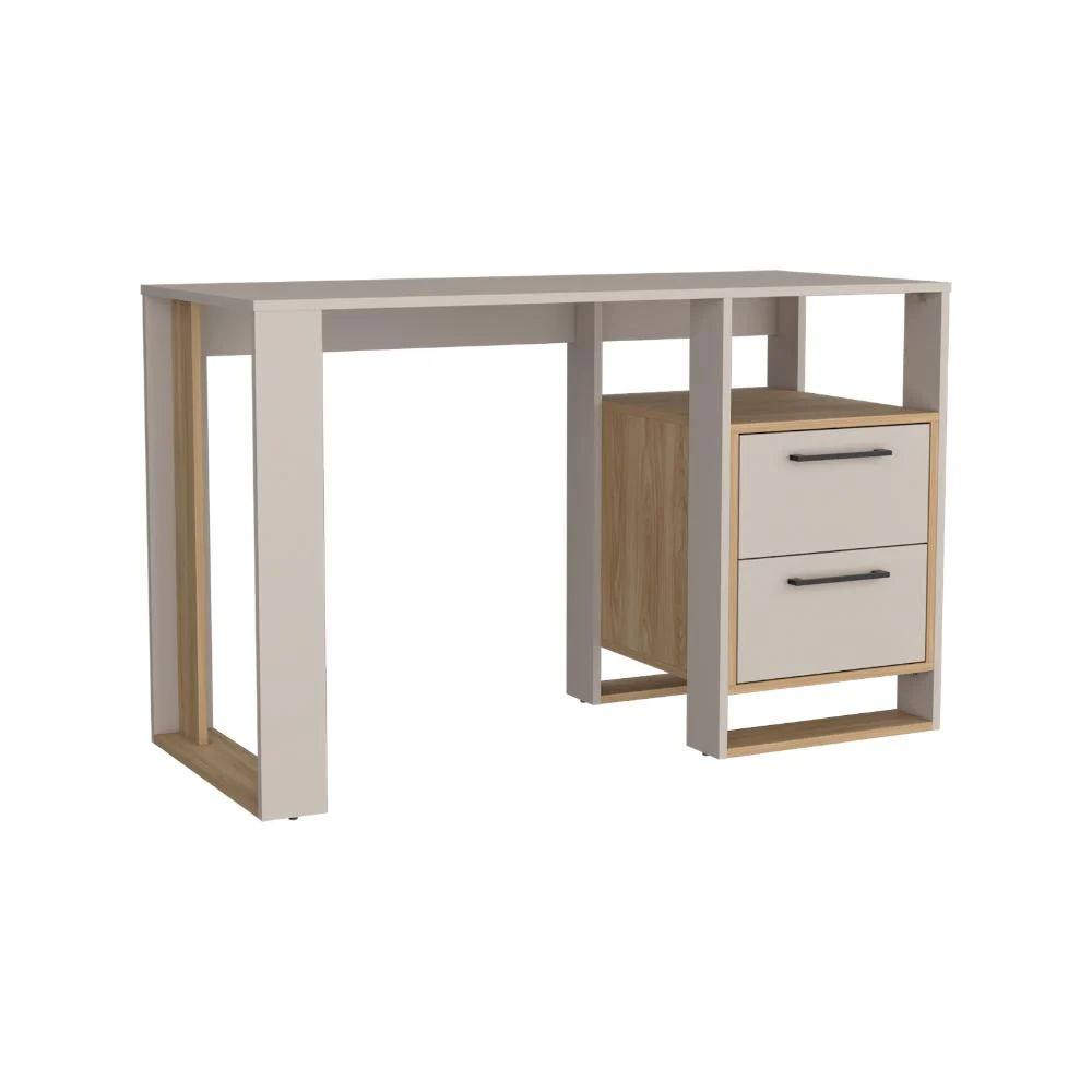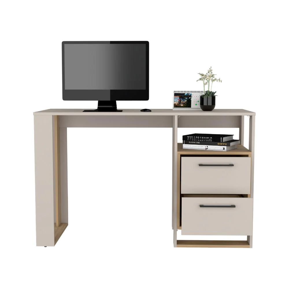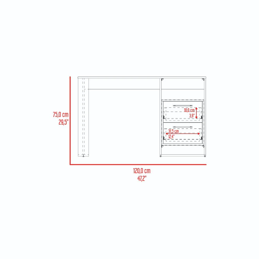 Escritorio, con amplia superficie de trabajo, dos cajones para ubicar objetos, diseño moderno.