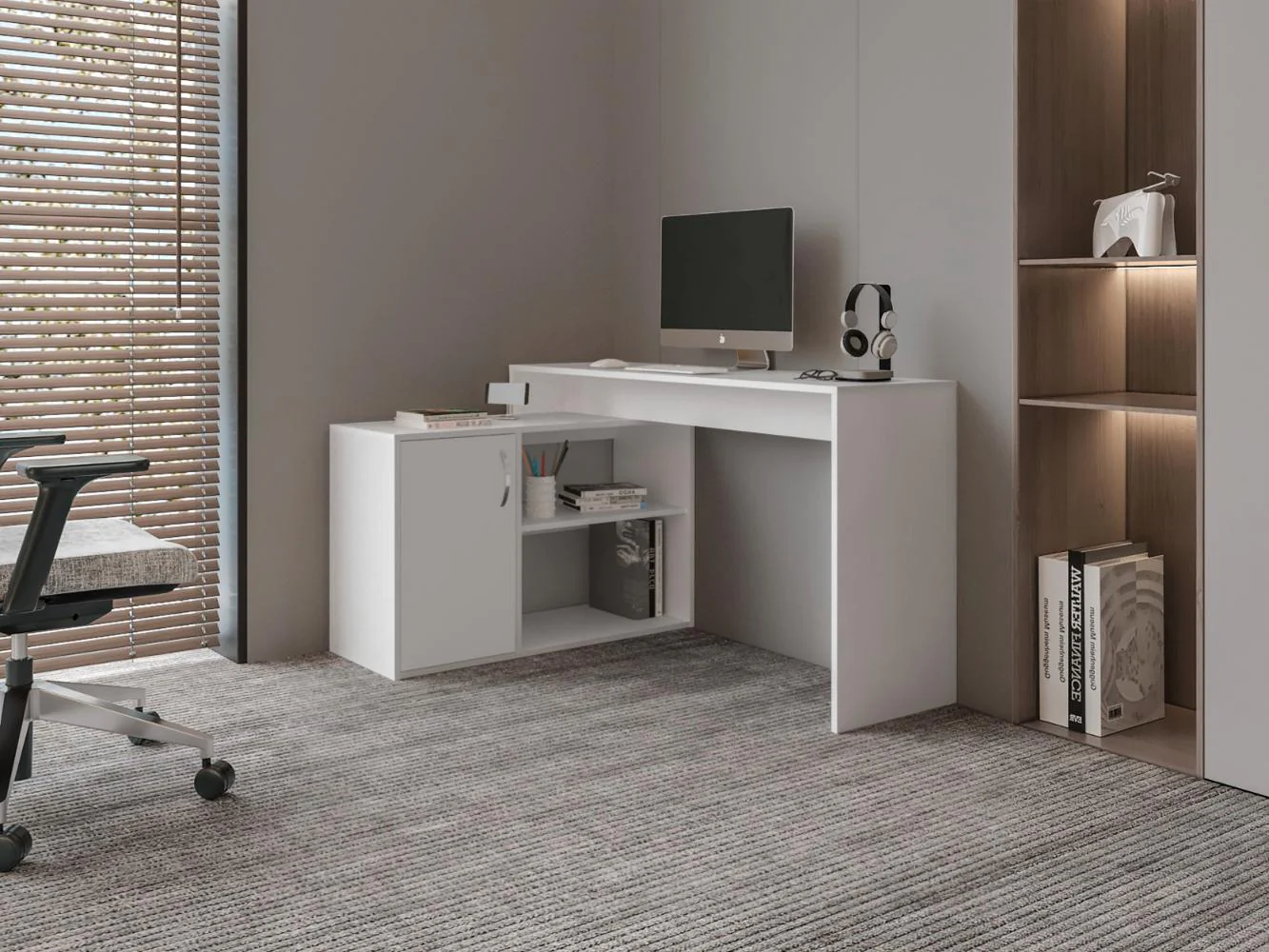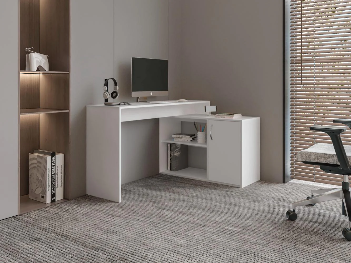 Escritorio Axis Eco, Blanco Duqueza, con amplio espacio de trabajo