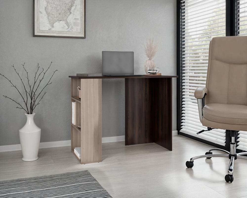 Escritorio, con espacio para accesorios, espacio para ubicar libros y objetos, es de facil instalación.