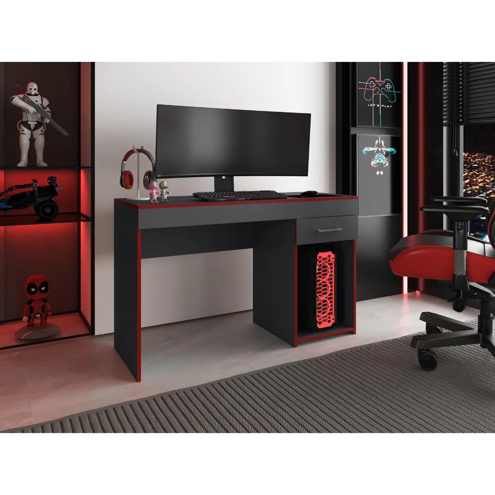 Escritorio Gamer , con 2 cajones multiusos de correderas metálicas deslizables, y espacio para artículos de juego, trabajo o entretenimiento. Amplia superficie