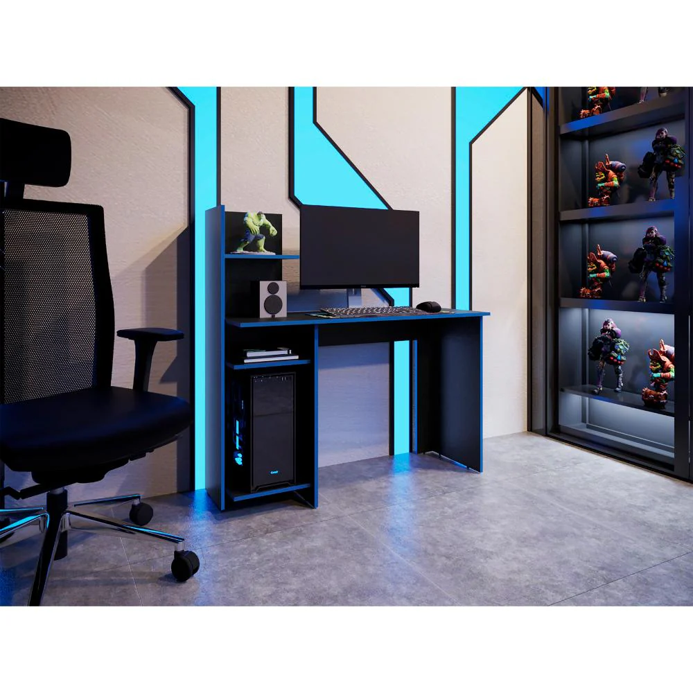 Escritorio Gamer, con amplia superficie de trabajo, 4 entrepaños para ubicar libros y/o elementos decorativos.