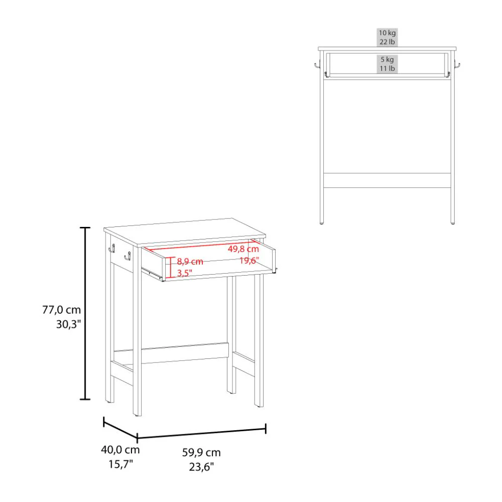 Escritorio, con amplia superficie de trabajo, 1 cajon, incluye 4 ganchos para colgar, y es de facil instalación