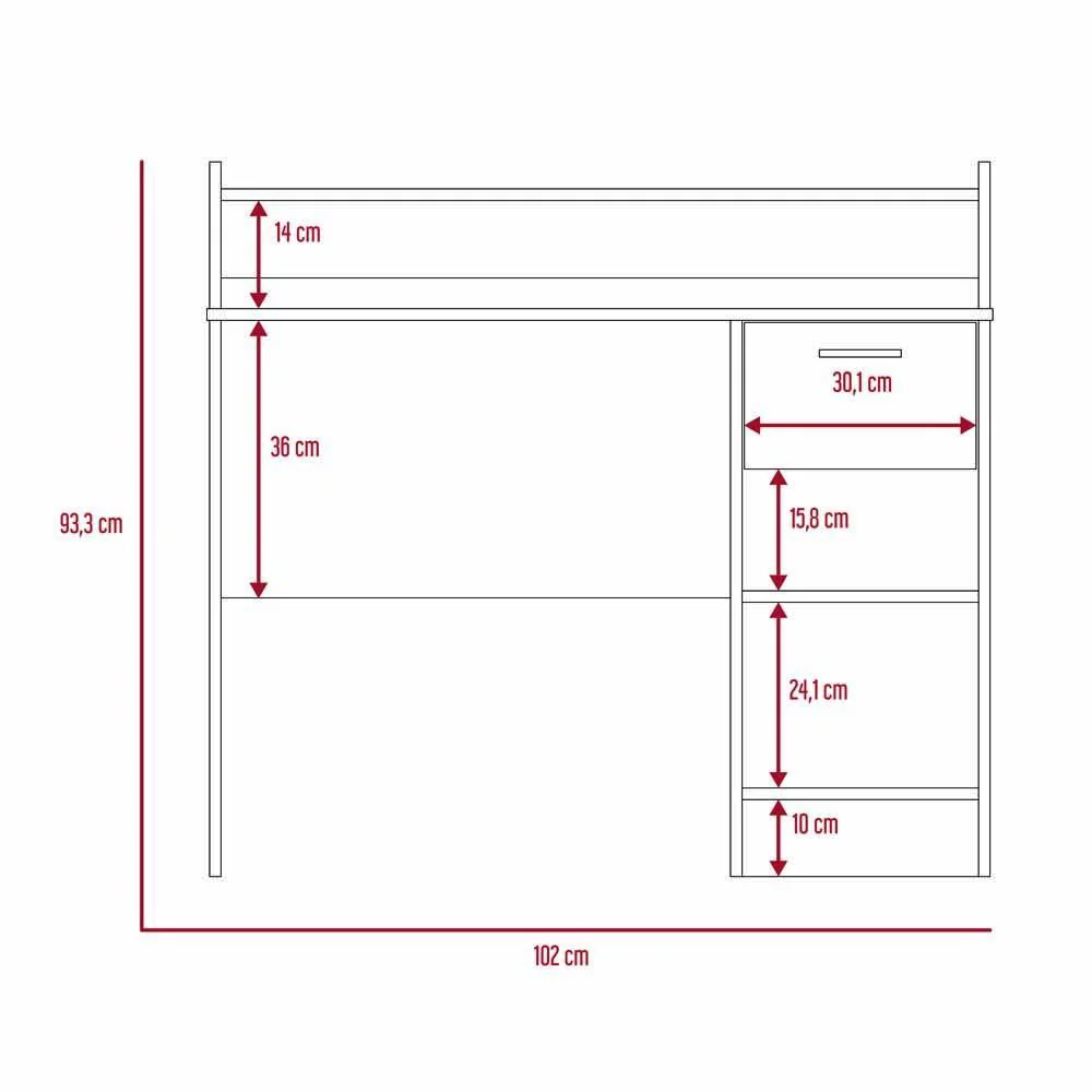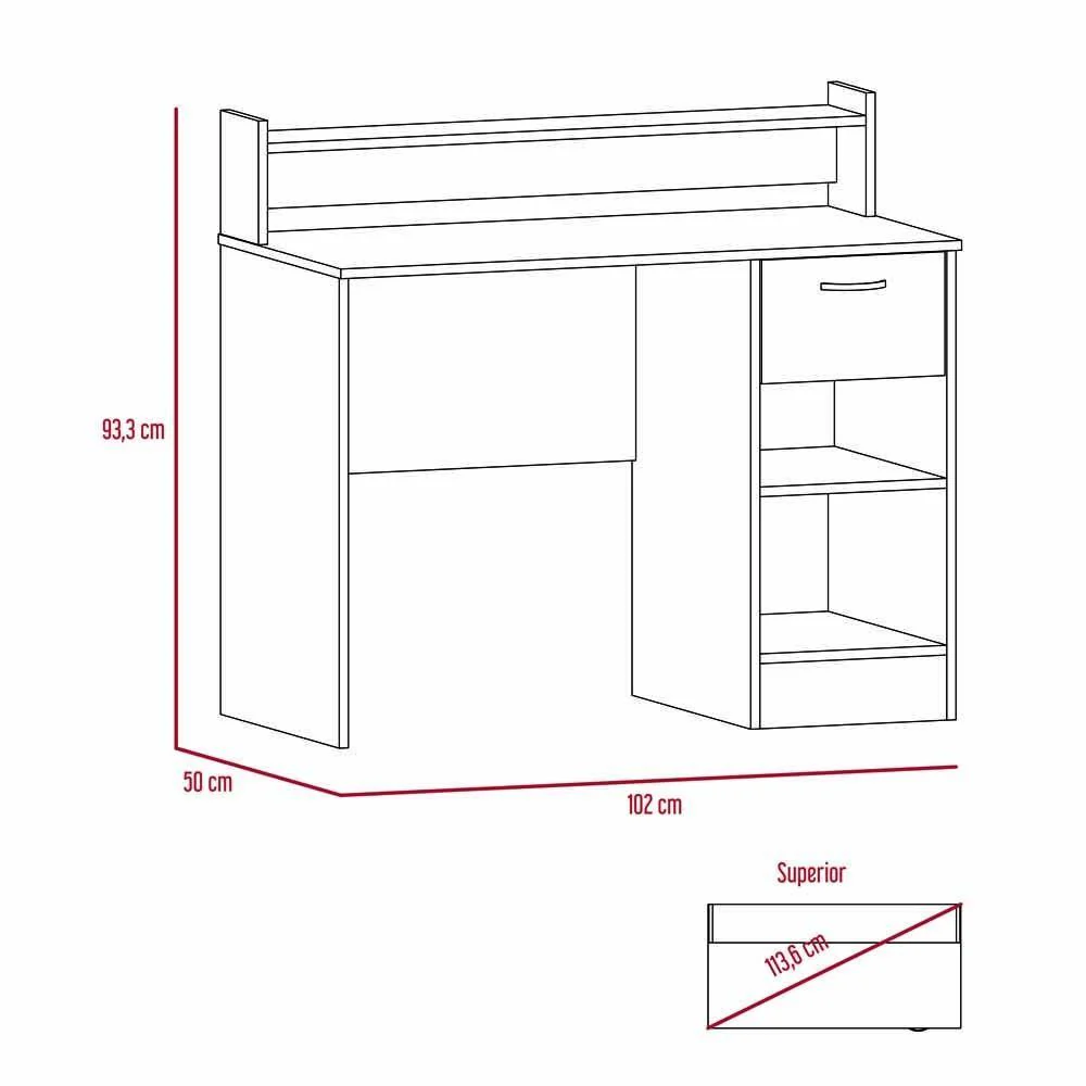Escritorio, con amplia superficie de trabajo, 2 entrepaños para almacenamiento, 1 cajón.