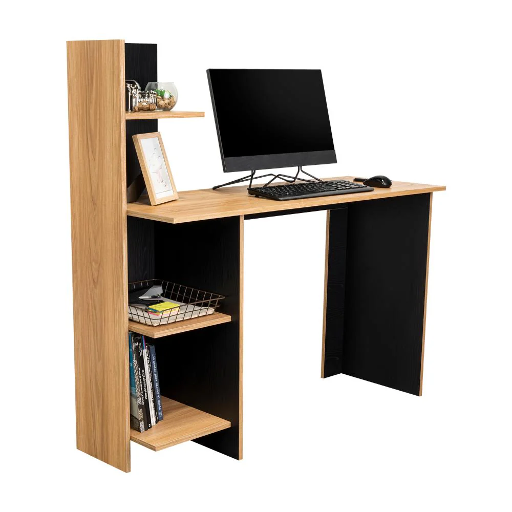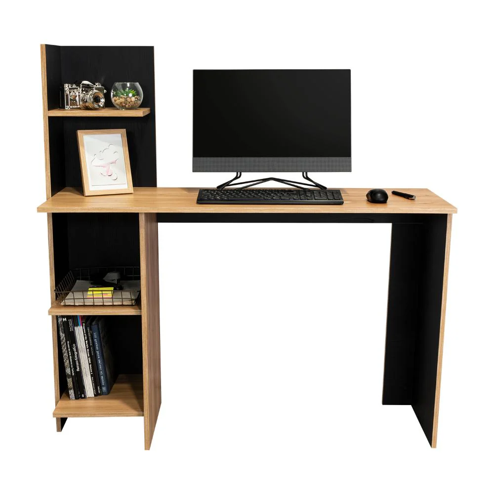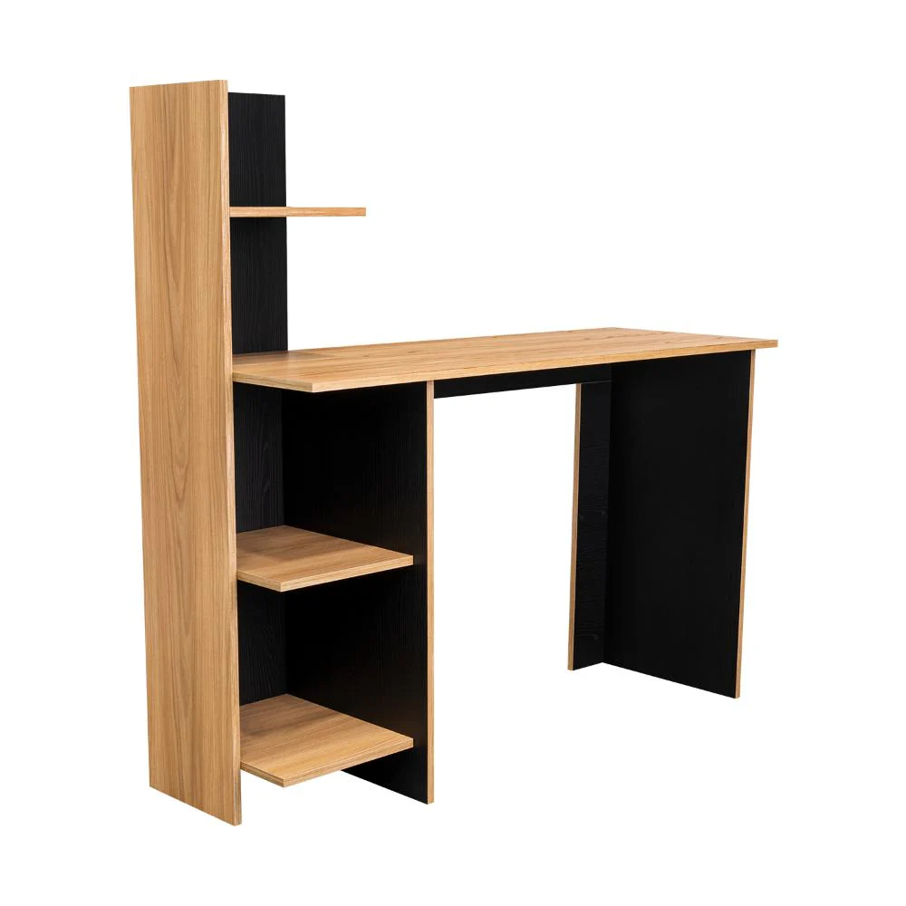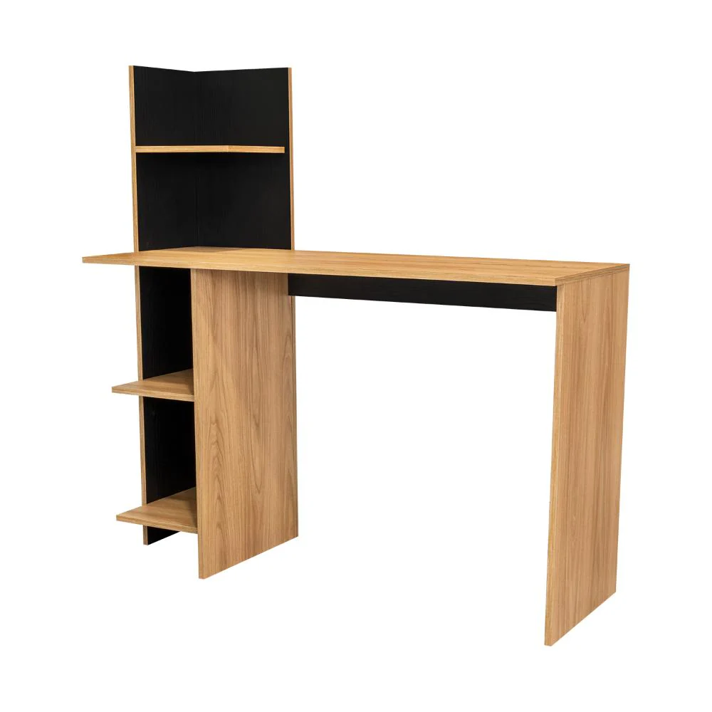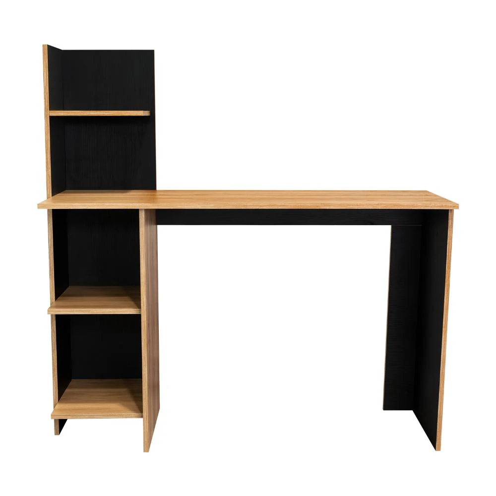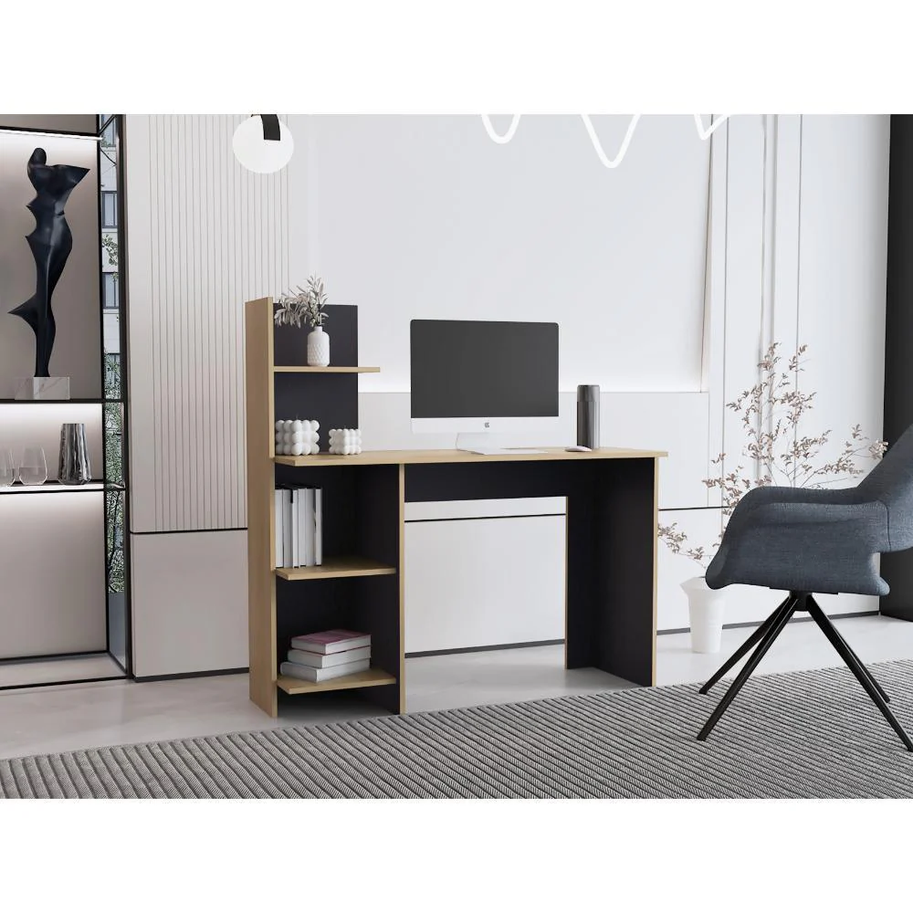 Escritorio, con amplia superficie de trabajo, 4 entrepaños para ubicar libros y/o elementos decorativos.