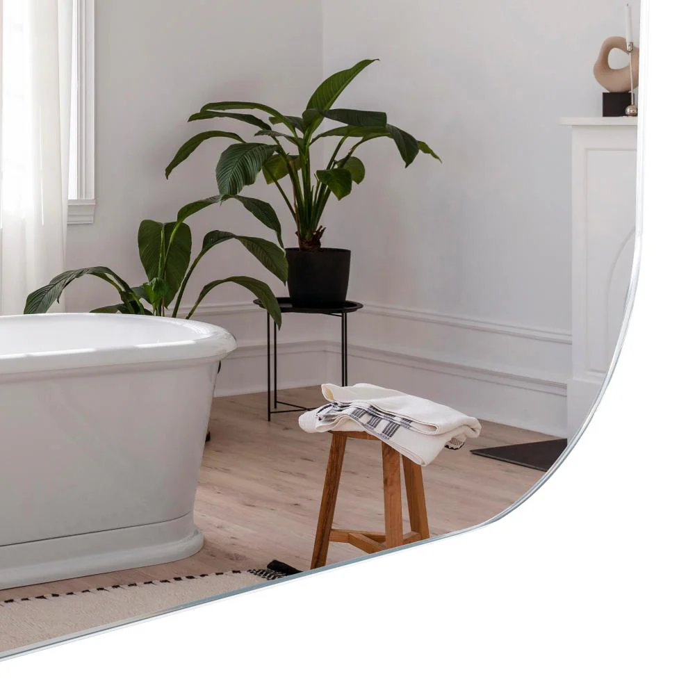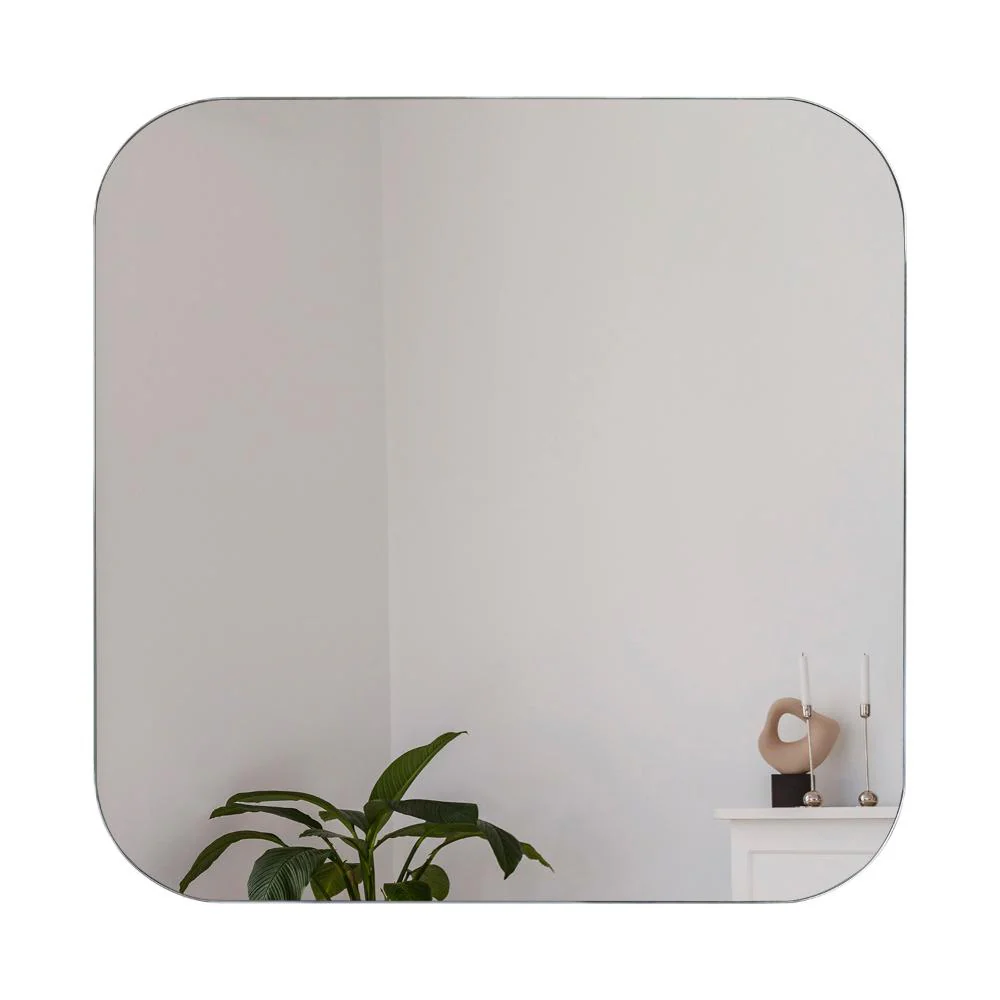 Espejo cuadrado con bordes redondeados, ensamblé a la pared con chaflan.