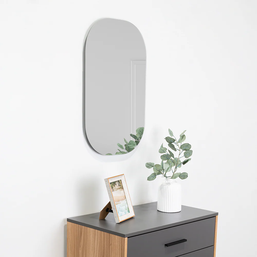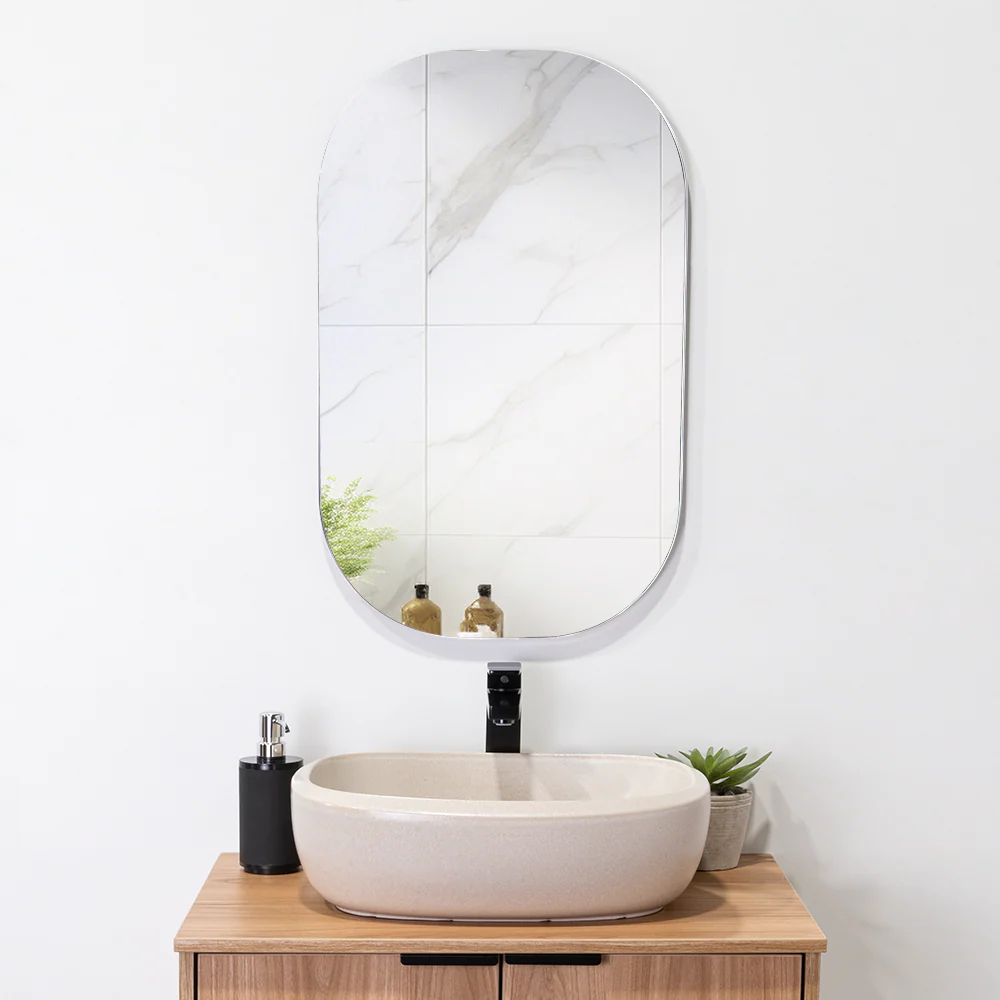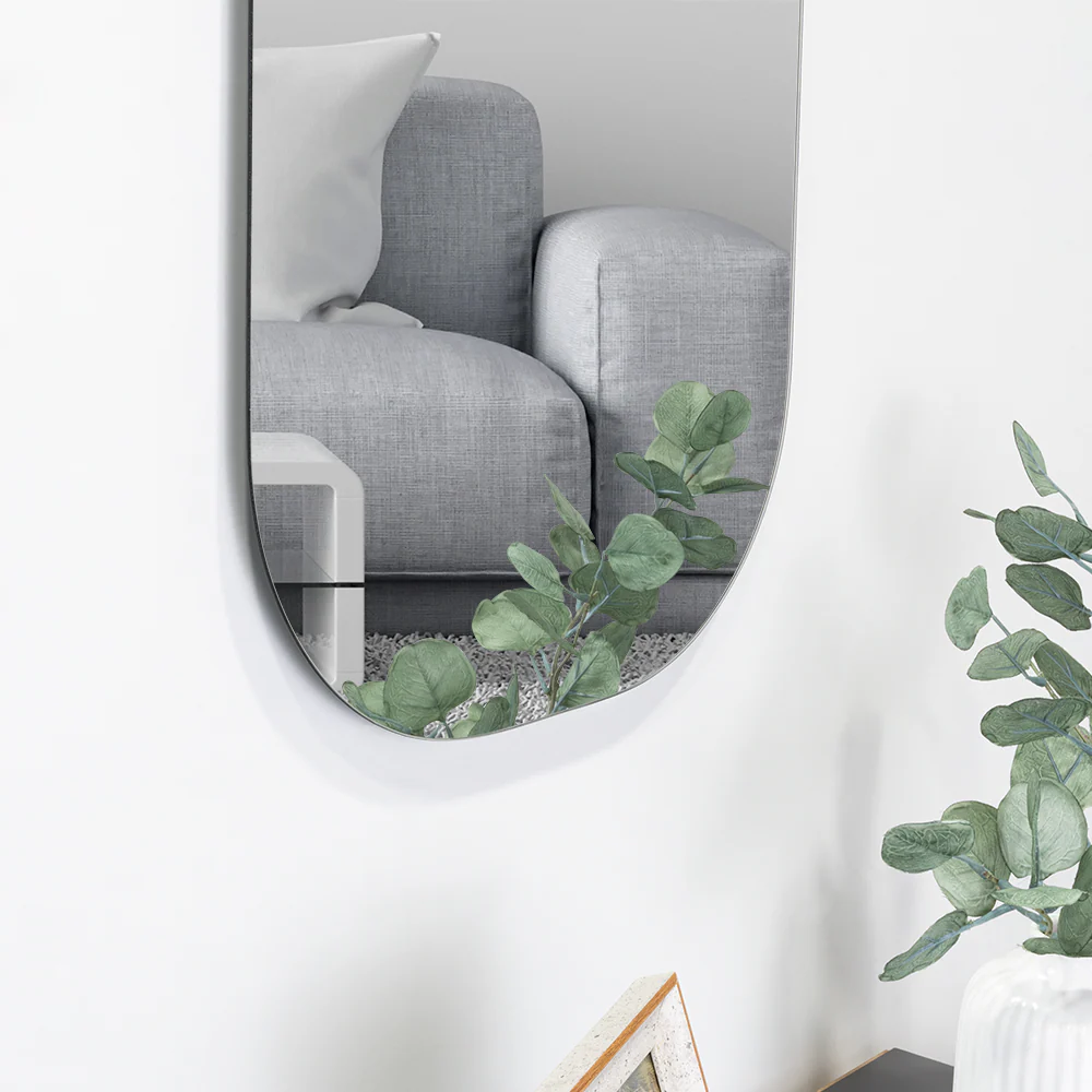 Espejo irregular de 43×68 3mm, ensamble a pared con chaflán
