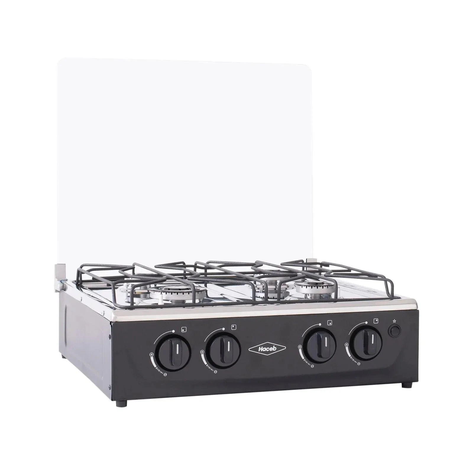 Estufa de mesa en acero inoxidable con gran espacio de trabajo, fuentes de calor de diferentes tamaños con encendido eléctrico y vidrio superior templado que protege la pared de salpicaduras. Su parrilla única en alambrón con puntos de apoyo óptimos brinda estabilidad, seguridad y alta eficiencia. Cuenta con perillas ergonómicas, con diseño único y fáciles de manejar.