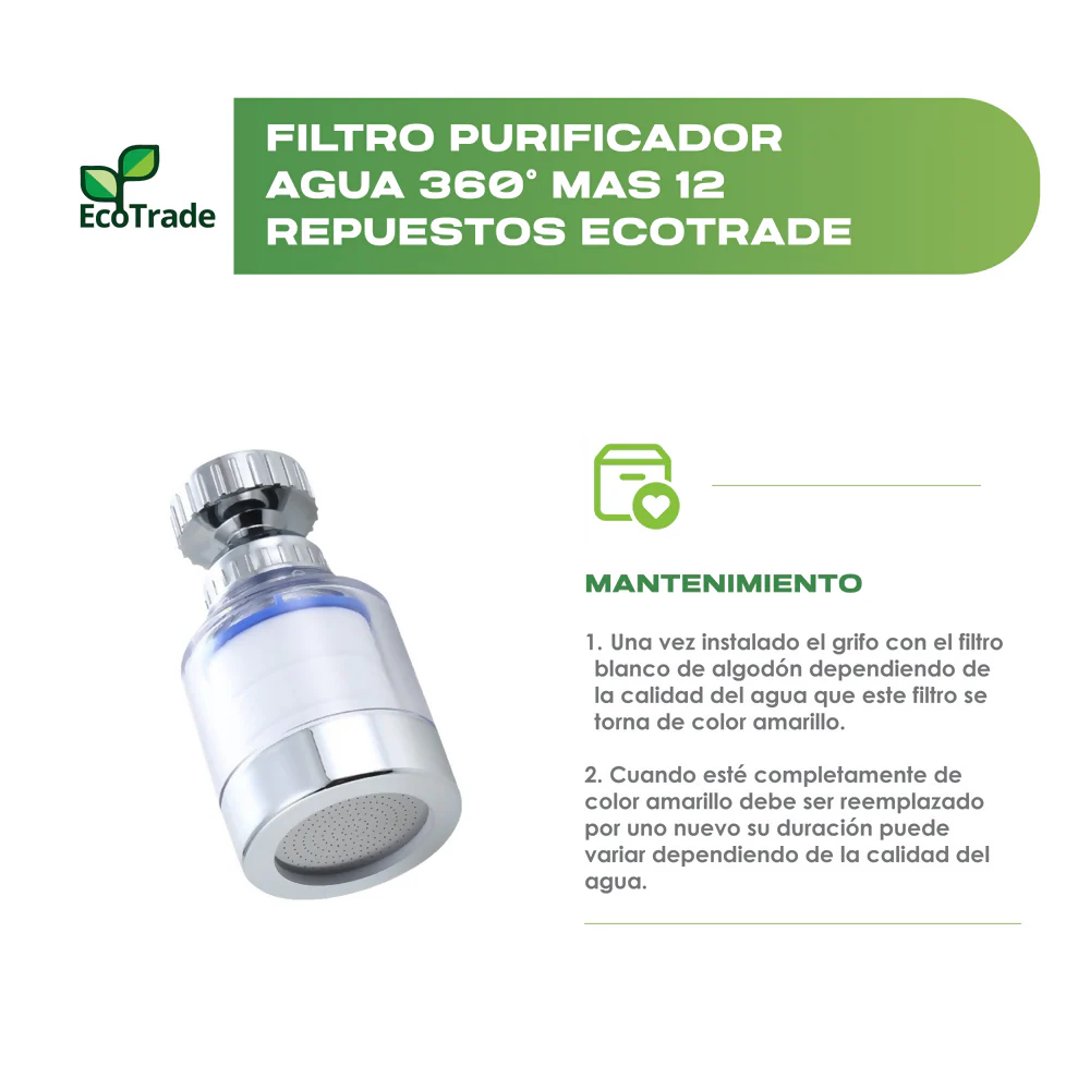 Filtro Purificador Agua 360° mas 12 Repuestos Ecotrade, Ideal para Hogar y Oficina. Marca: Ecotrade Filters.