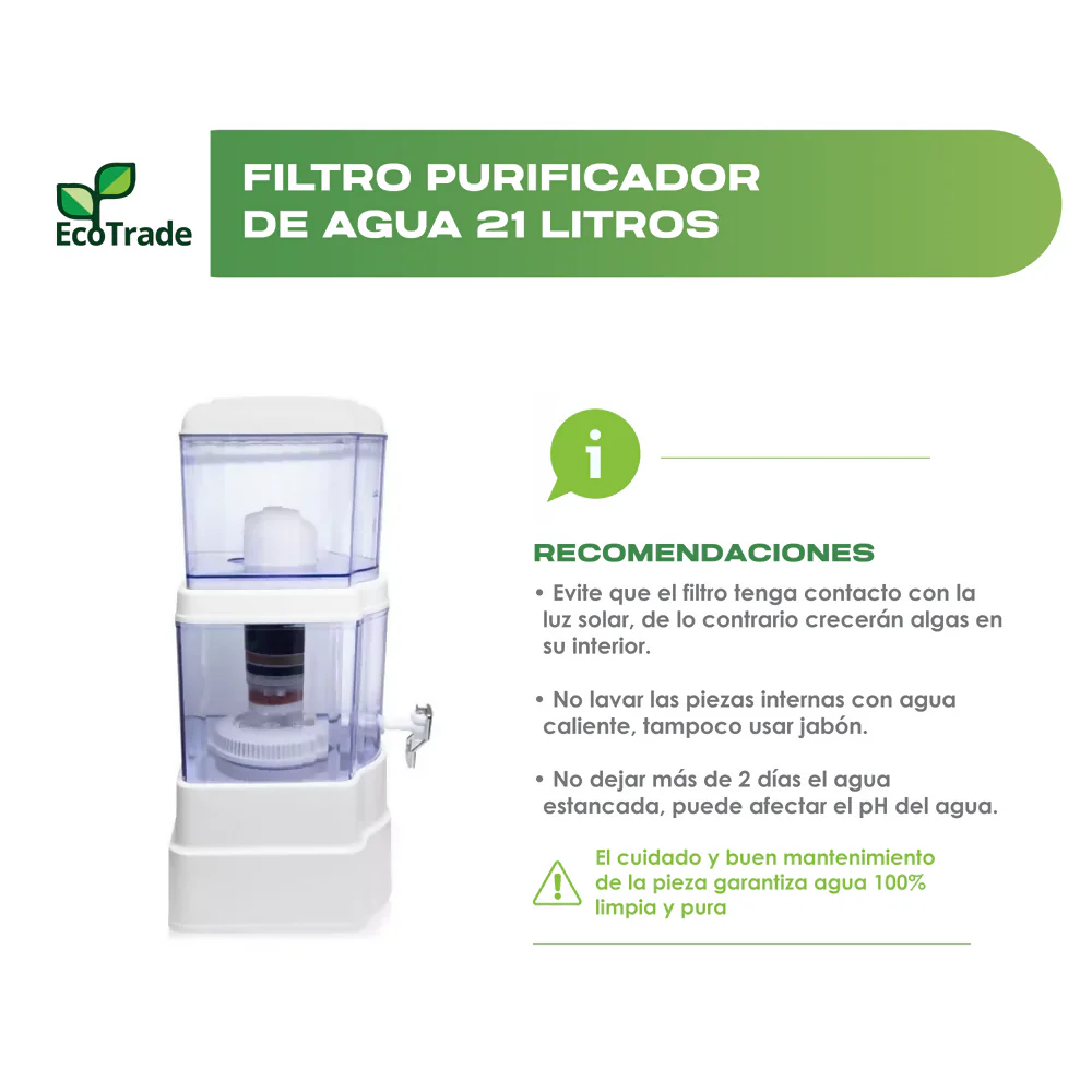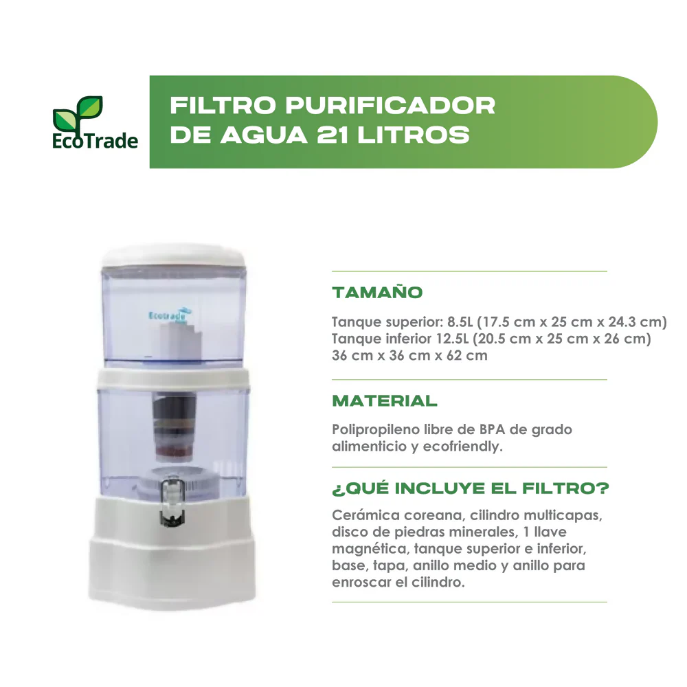 Filtro Purificador de Agua con Capacidad de 21 Litros – Marca: Ecotrade Filters, Ideal para Hogar y Oficina