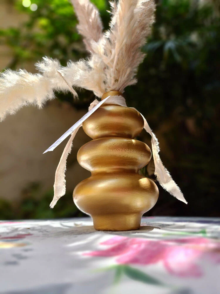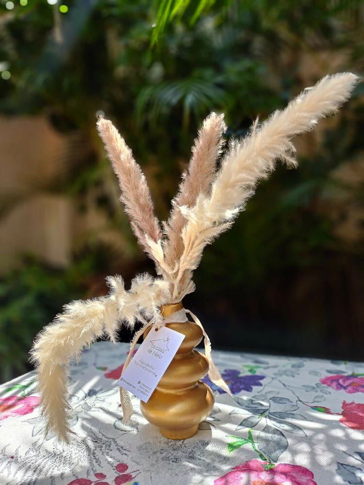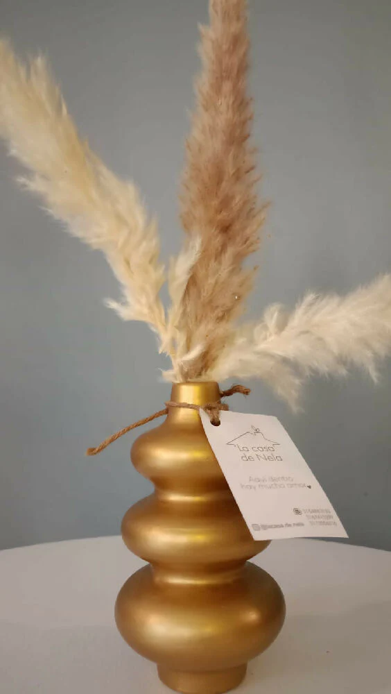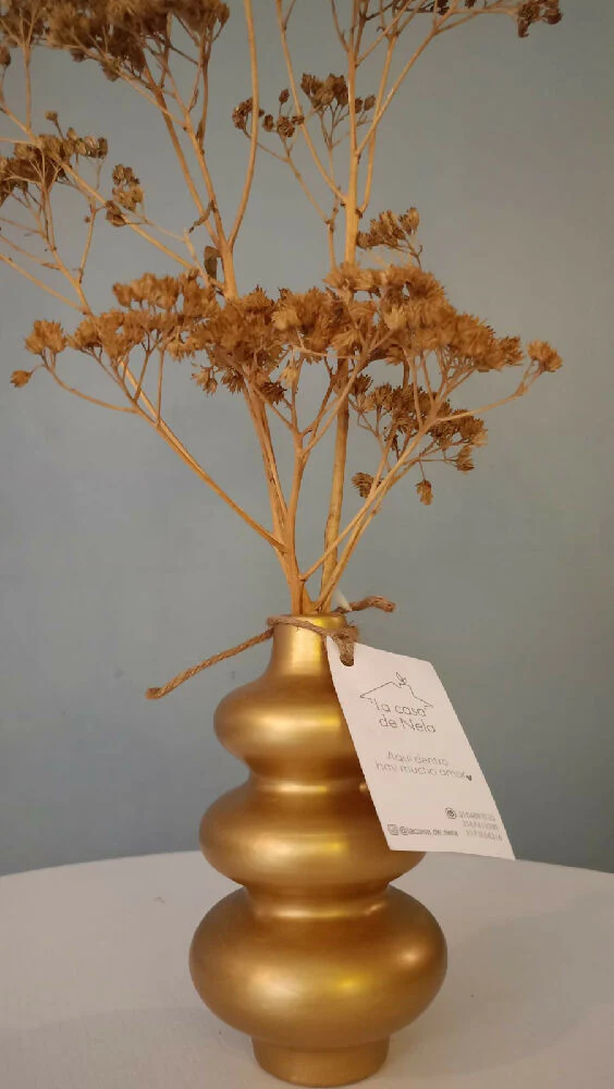Elaborado en cerámica, que brinda un toque orgánico y artesanal, perfecto para atraer armonía a tu hogar. Pintado a mano en color dorado.