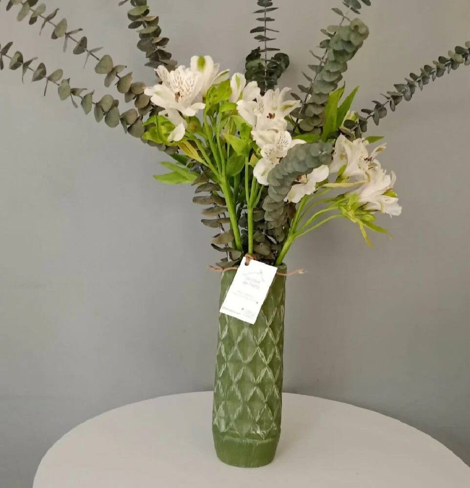 El Florero Toscana con diseño tubular de cerámica es el complemento ideal para resaltar la belleza de tallos esbeltos y flores delicadas. Su forma alargada y simétrica transmite equilibrio y armonía.