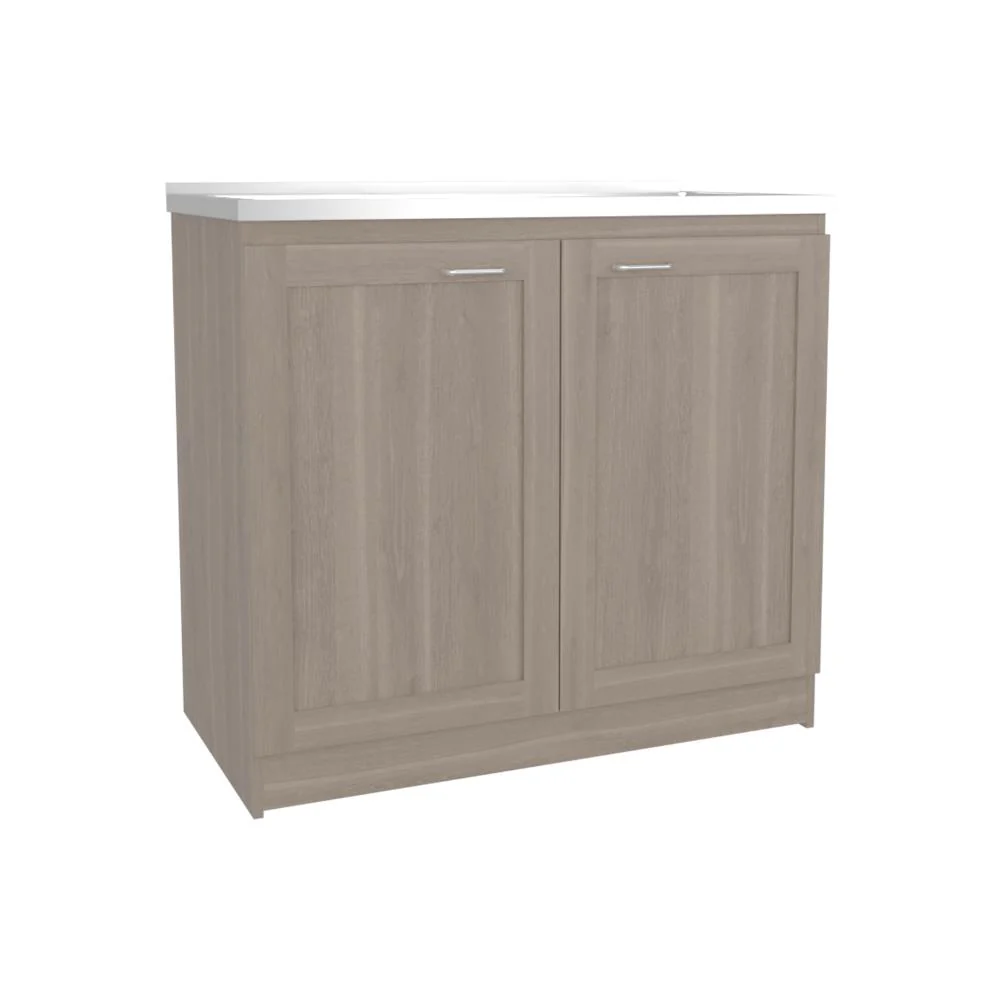 Gabinete Inferior con dos puertas batientes, espacio de almacenamiento Y manijas metálicas.