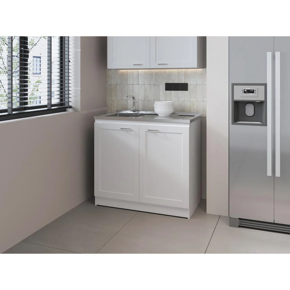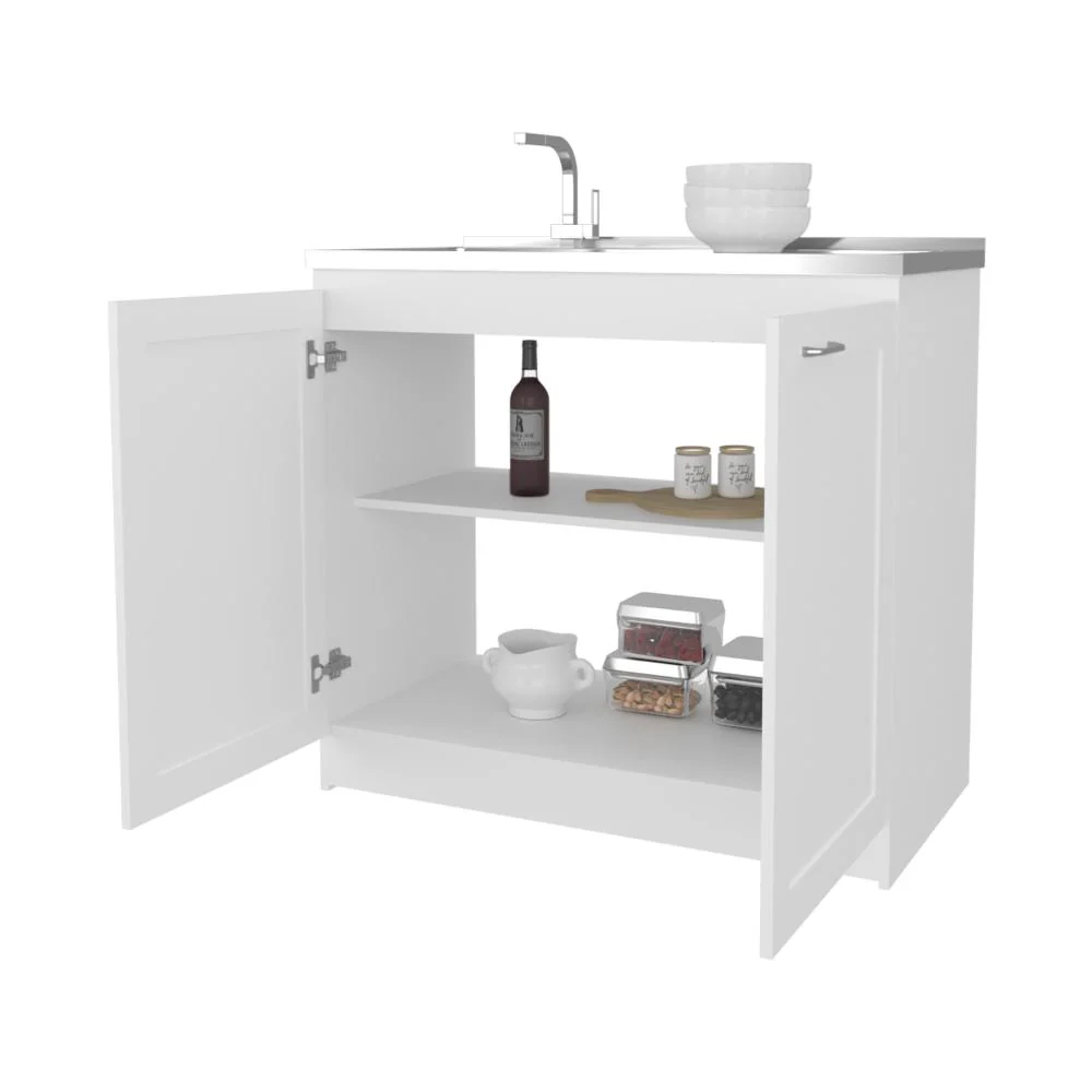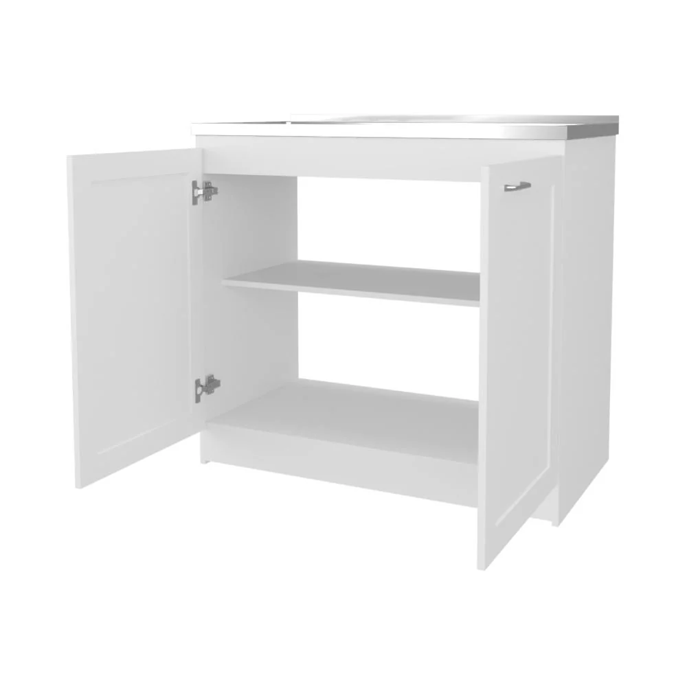 Gabinete Inferior con dos puertas batientes, espacio de almacenamiento Y manijas metálicas.