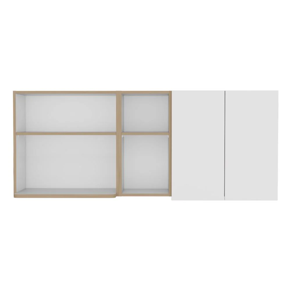 Elaborado en Madera aglomerada MDP, recubierta con láminas melamínicas de excelente calidad, en color Blanco y Fresno Europeo