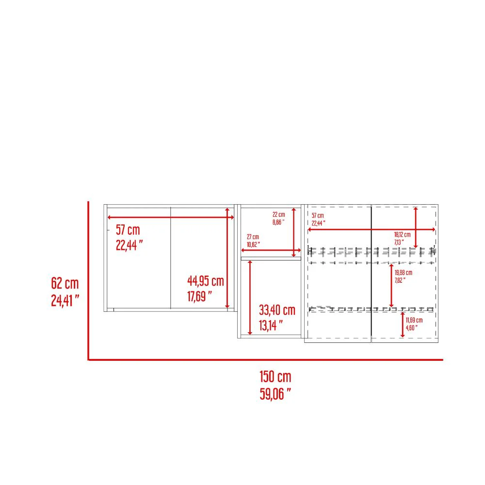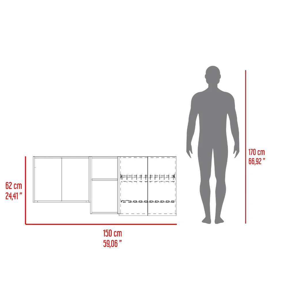 Elaborado en Madera aglomerada MDP, recubierta con láminas melamínicas de excelente calidad, en color Blanco y Fresno Europeo