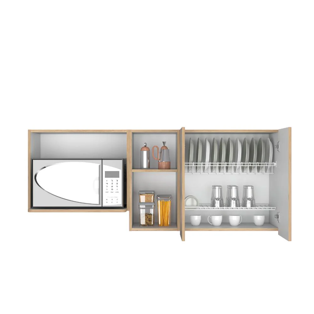 Gabinete Superior , con cuatro puertas abatibles, manijas metálicas, incluye locero y portavasos, gran espacio para almacenamiento.