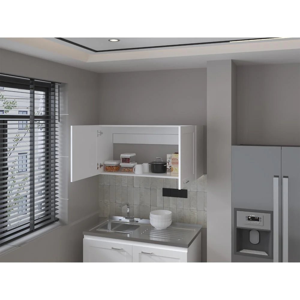 Elaborado en Madera aglomerada MDP, recubierta con láminas melamínicas de excelente calidad, en color Blanco.