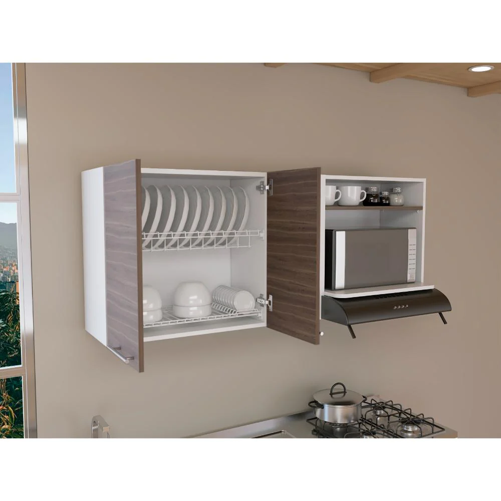 Gabinete de Cocina, con 4 entrepaños, 2 puertas abatibles y incluye locero y portavasos.