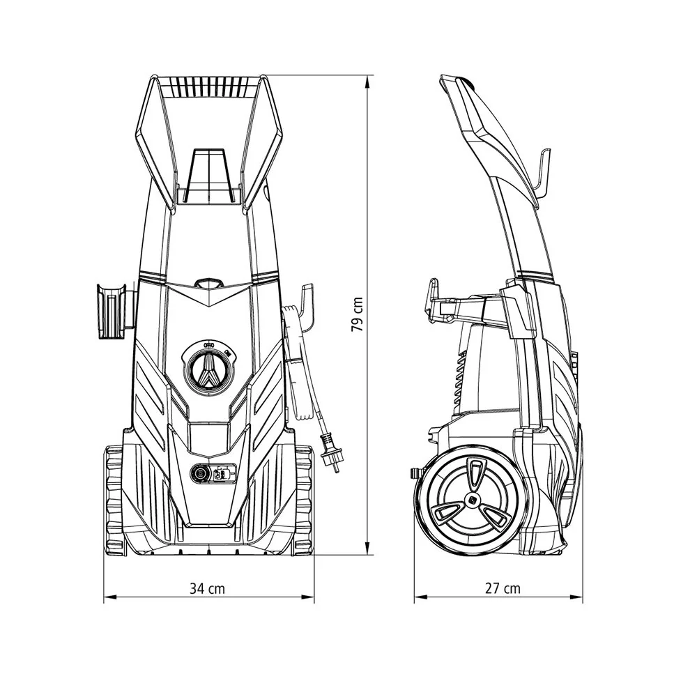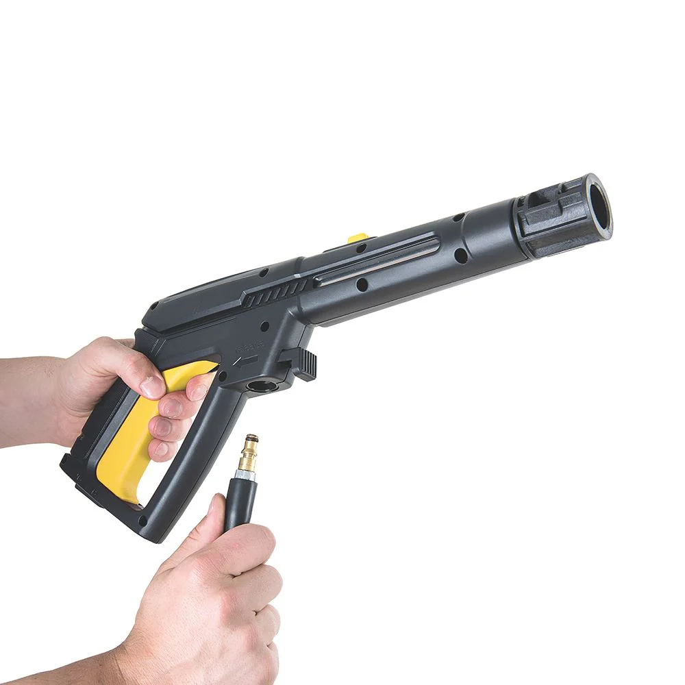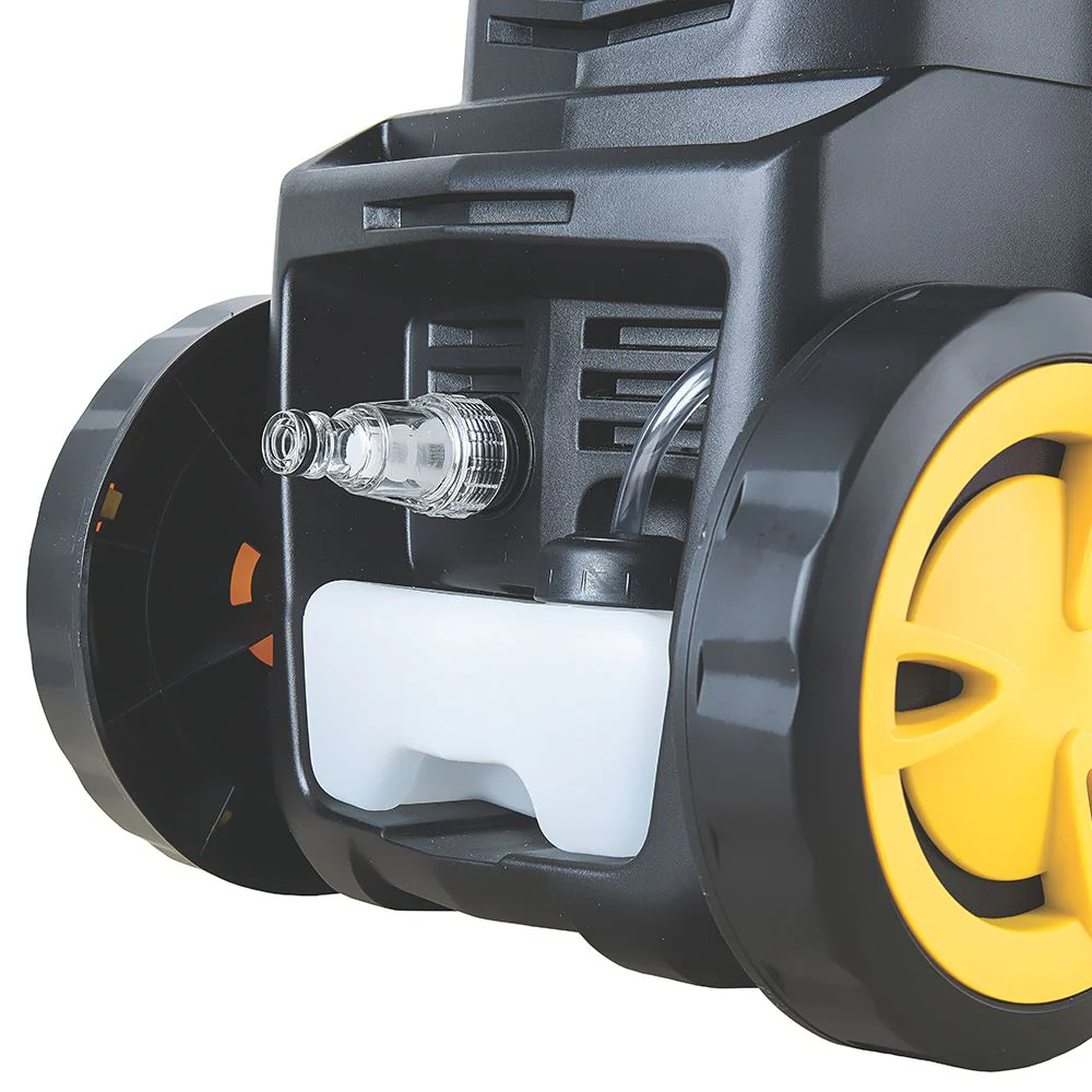 Hidrolavadora, elaborado en Bomba de agua en aluminio, potencia 2100 w, presión maxima 2100 psi, presión de trabajo 1600psi, caudal 7 l/min – 7,8 l/min, Color Negro y Amarillo
