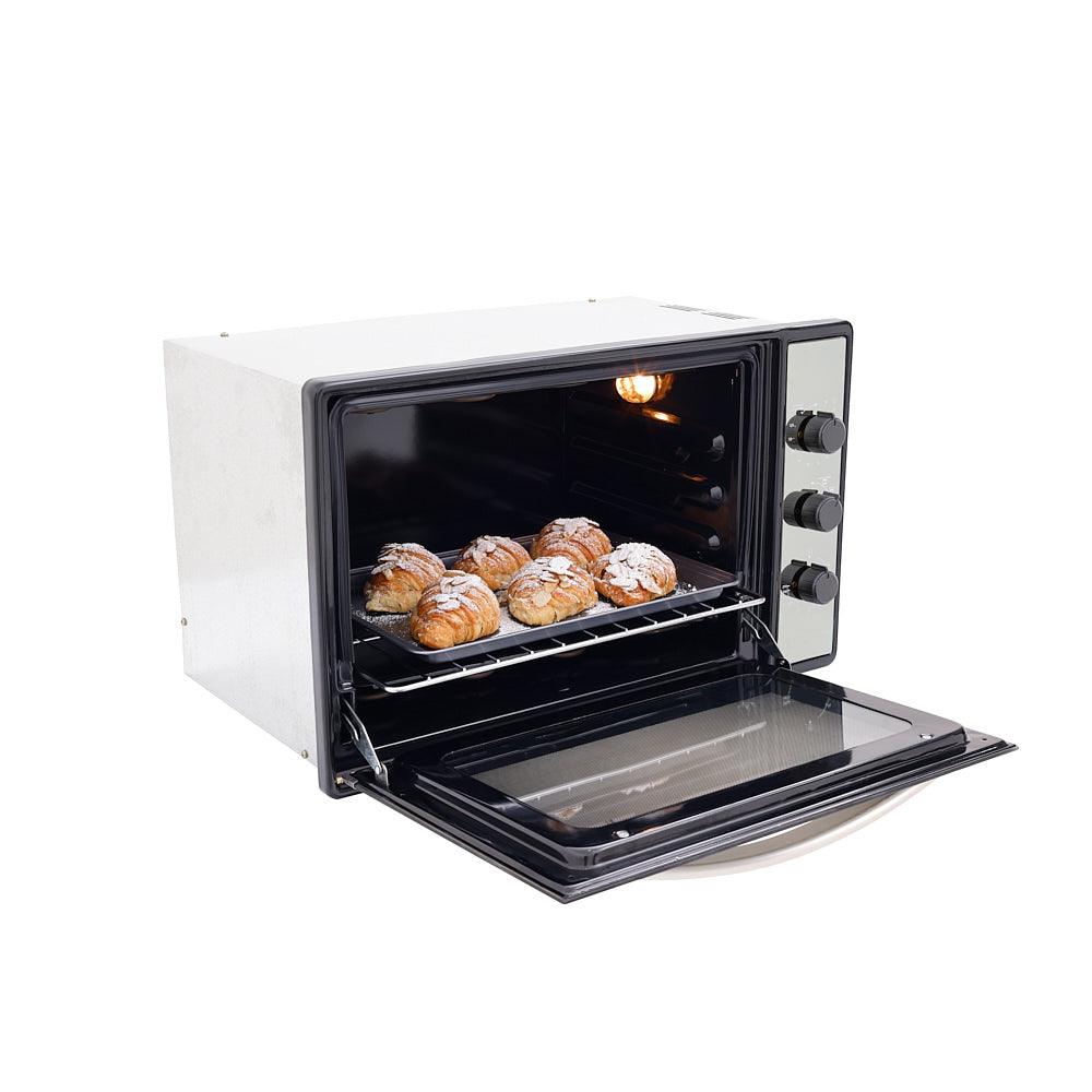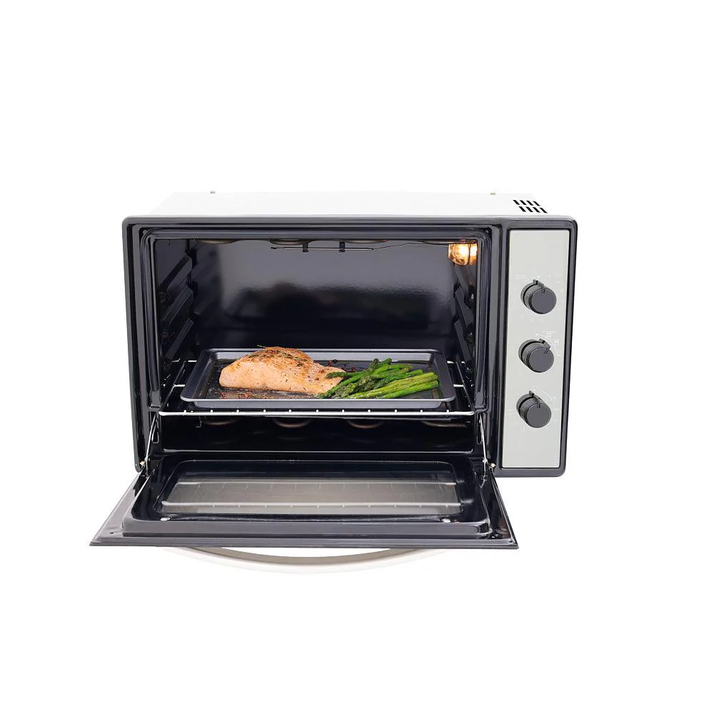 Horno eléctrico en acero inoxidable de 60 cm de ancho con doble vidrio de seguridad y reflectivo. Cuenta con fuentes de calor programables como prefieras según la necesidad de la receta y tiene el tamaño ideal y compacto para cocinar tus alimentos en menor tiempo. Gratinador eléctrico en curvas que garantiza excelente cobertura sobre las recetas para que queden homogéneas, crujientes y doradas. Temporizador para programar tus tiempos de cocción.