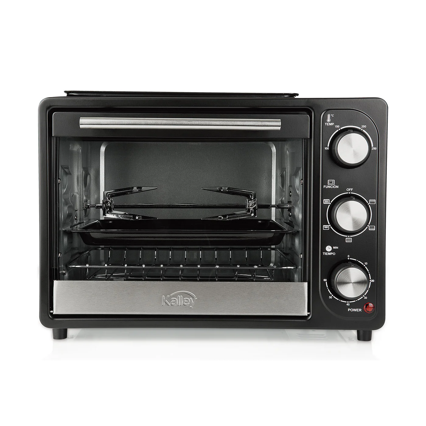 Conoce nuestro práctico Horno tostador KALLEY K-MHE18N negro.| Con 18 litros de capacidad, es el tamaño ideal para que prepares o calientes grandes o pequeñas porciones de comida. Cuenta con control de temperatura hasta 250°C, temporizador hasta 60 minutos, y selector de funciones para que elijas entre 5 funciones la que más se adapte a tu preparación, entre estas opciones cuentas con la función rostizador para tener cocciones uniformes. Además, cuenta con bandeja superior para asar o calentar mientras horneas. ¡Lleva el tuyo acá!