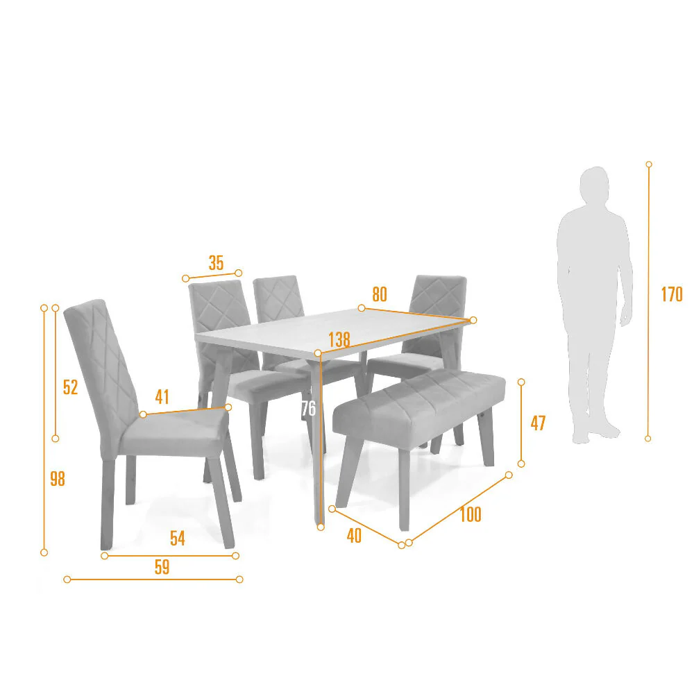 Mesa De Comedor: 138 cm ancho x 80 cm largo x 76 cm alto.