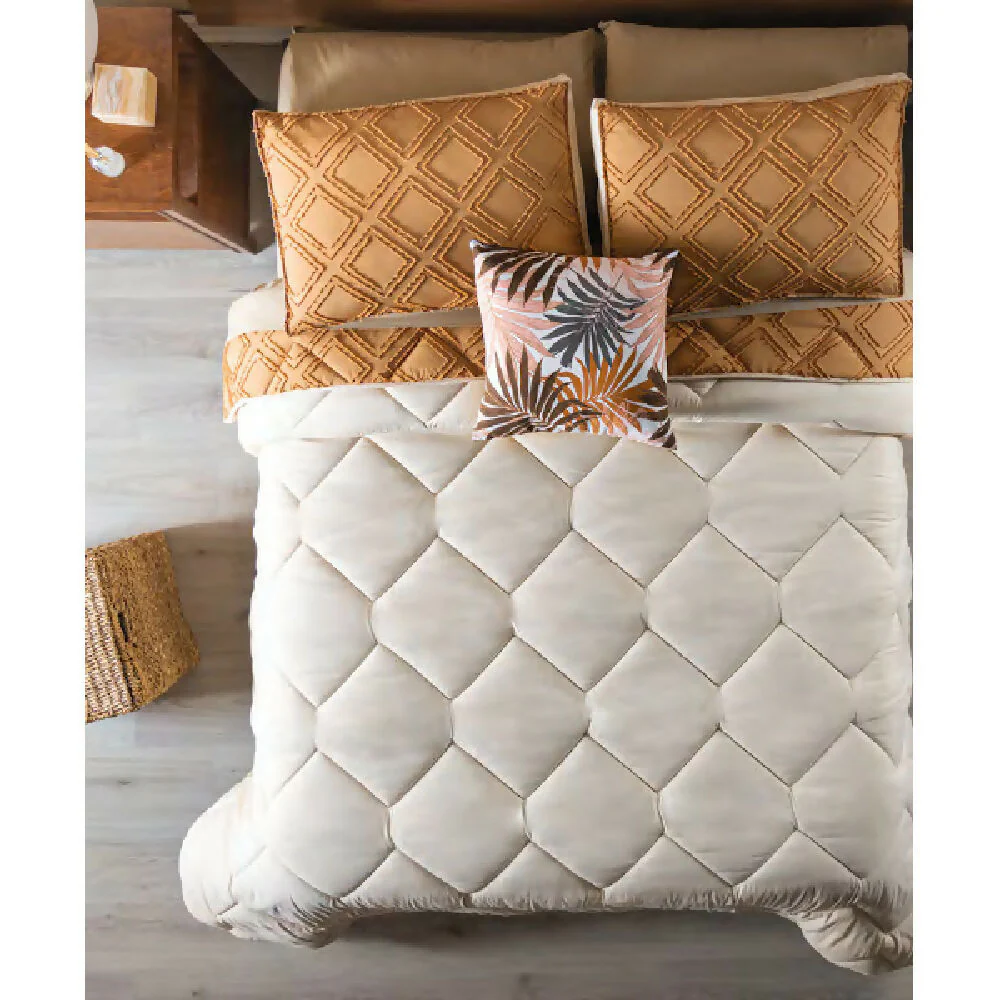 Juego de Edredón Tula para cama Doble y Queen. Doble Faz para darle un toque renovado a tu habitación. Incluye 2 Fundas y 1 Cojín. Con un suave y delicado acolchado para que tus noches sean más calientitas y confortables. Su bordado con relieve que brinda sensación de modernidad.