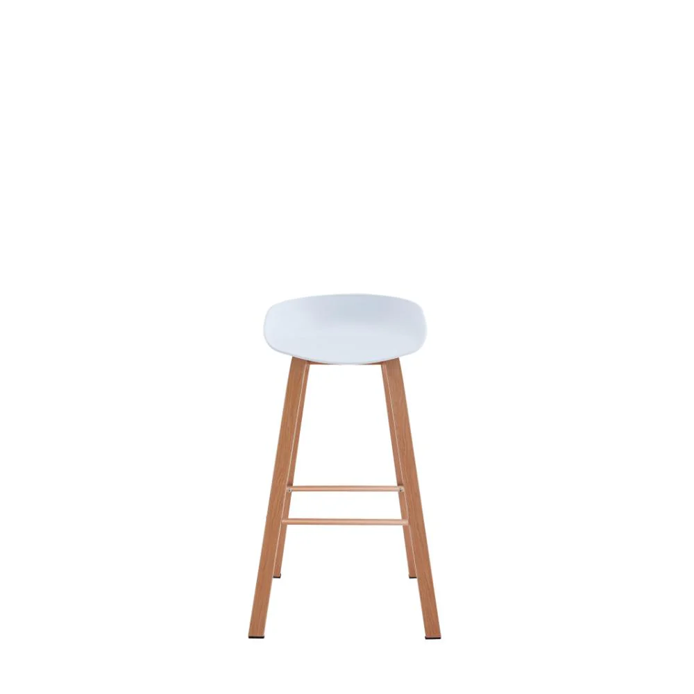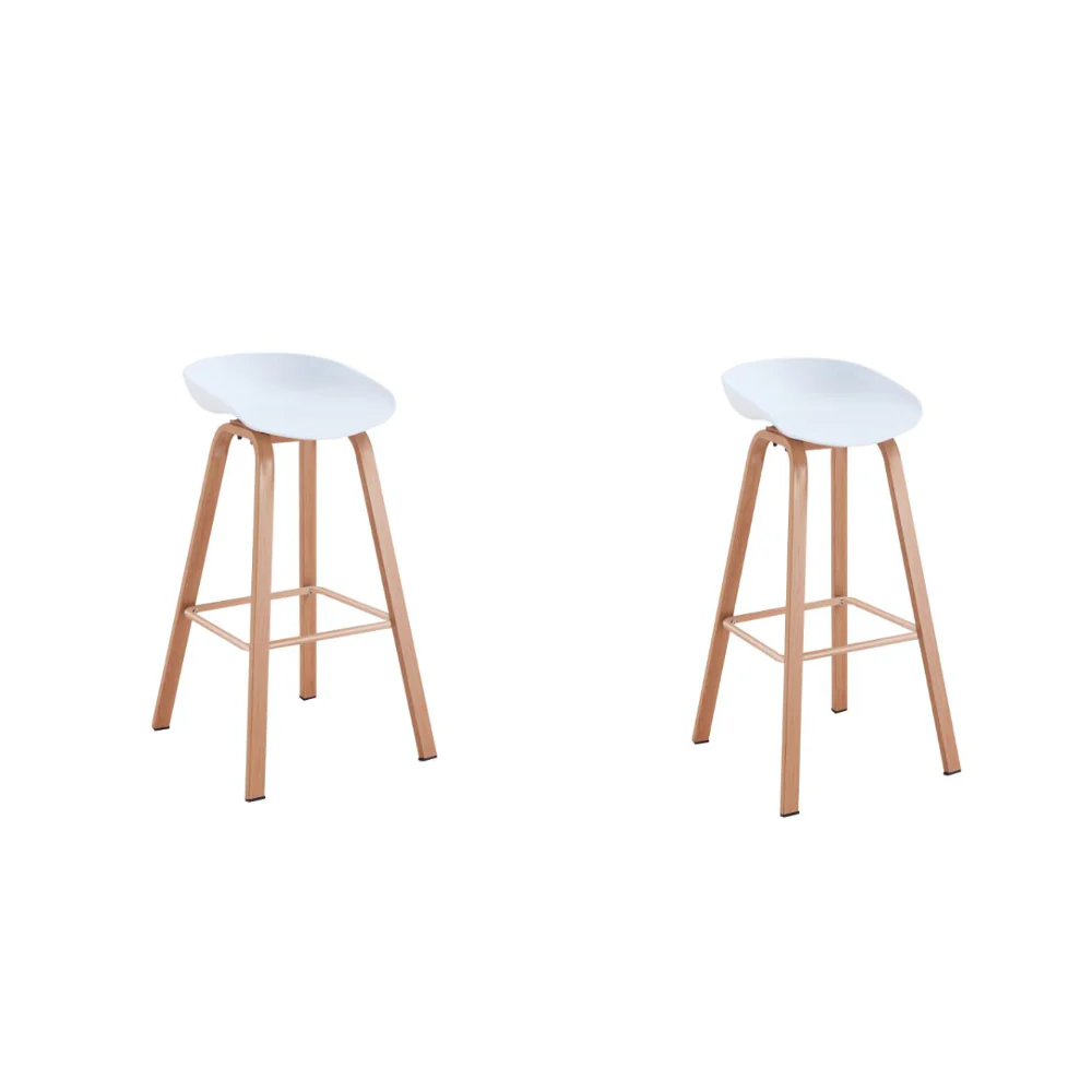 Silla Bar x2, con diseño moderno, comodo asiento y patas en metal color madera.
