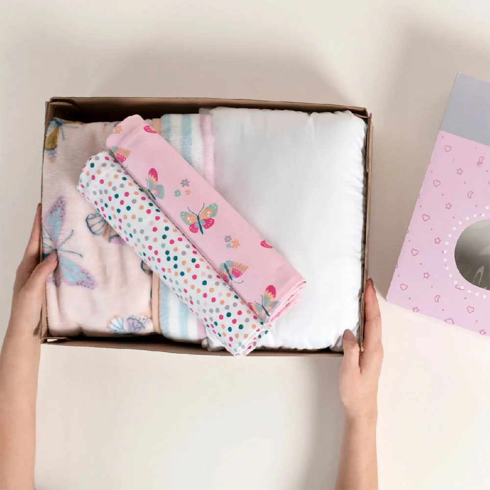 Kit para Regalo de Bebé Spring, Incluye Cobertor, Sabanitas y Almohada
