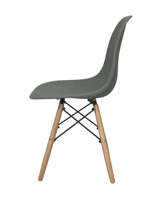 La Air es una silla contemporánea y permanece en la era del tiempo, gracias a su respaldo y su asiento en polipropileno inyectado de alta resistencia. Su base de madera con refuerzo adicional en el interior de acero, a parte de sus varillas metálicas lacadas en negro; le dan este diseño original.