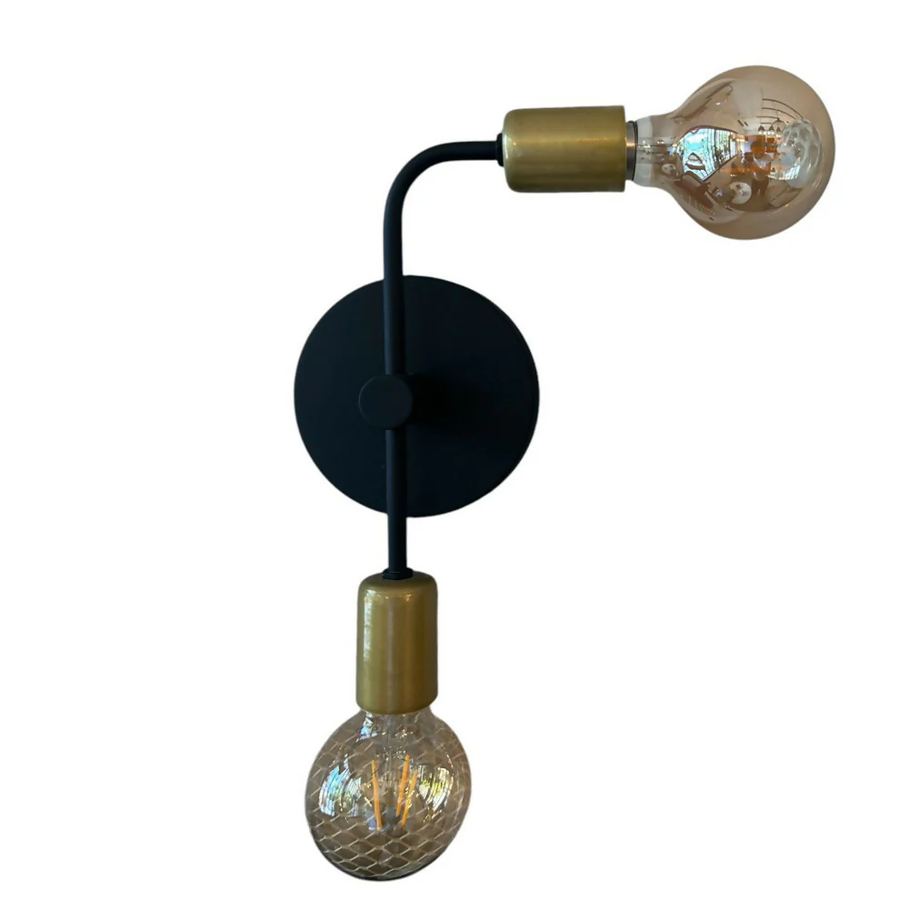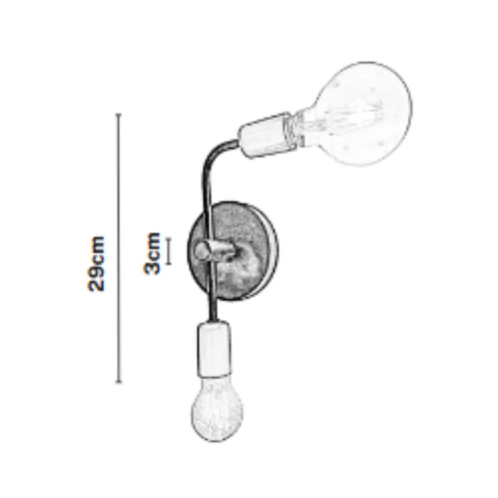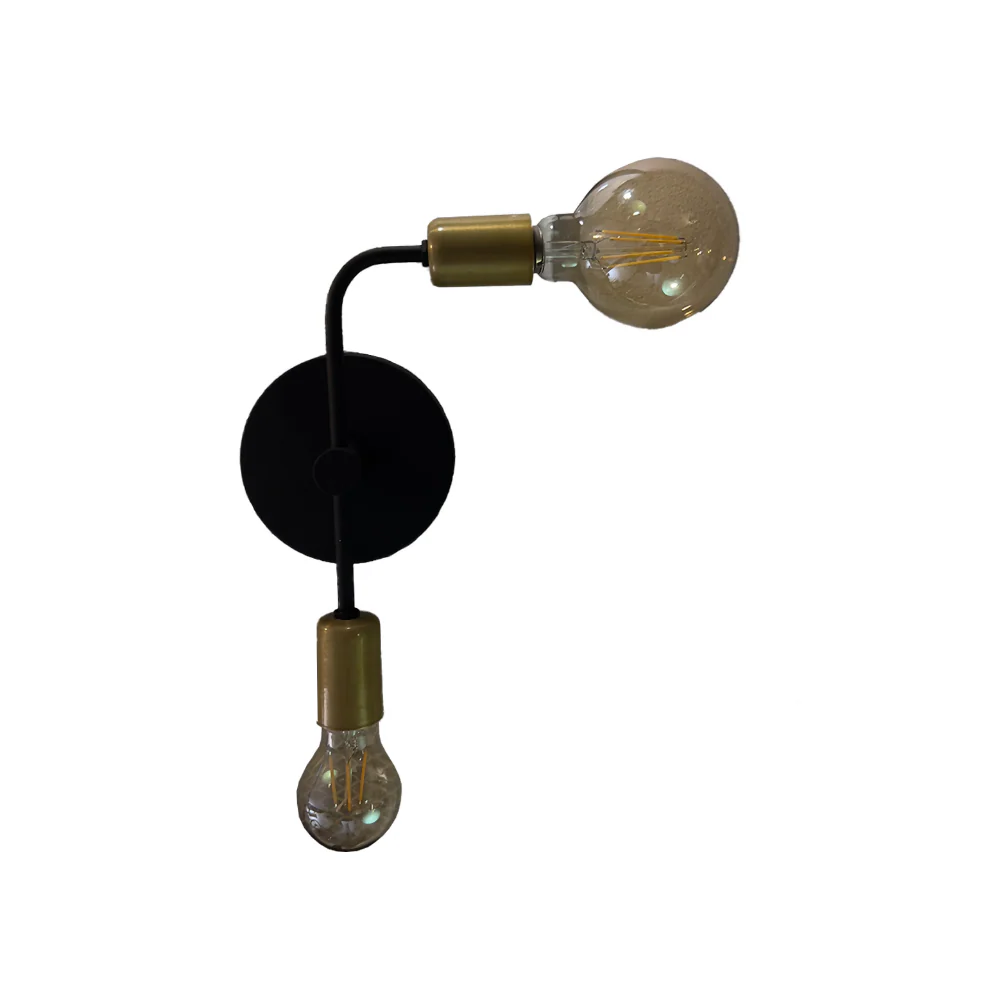 Aplique decorativo de 2 luces con cuadrante central en aluminio y brazos con porta socket, ideal para ambientes residenciales y comerciales.