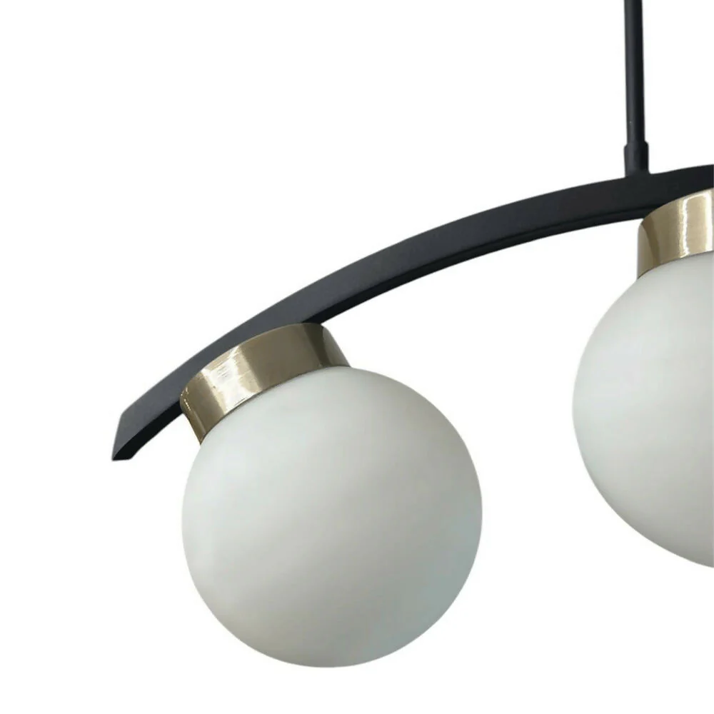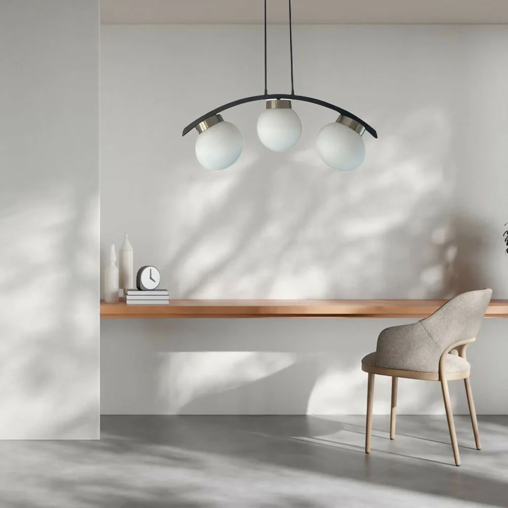 Lámpara de techo decorativa con 3 luces y diseño moderno curvo, ideal para ambientes residenciales, comerciales o industriales. Incluye bombas B12 y B8, ofreciendo un estilo único.
