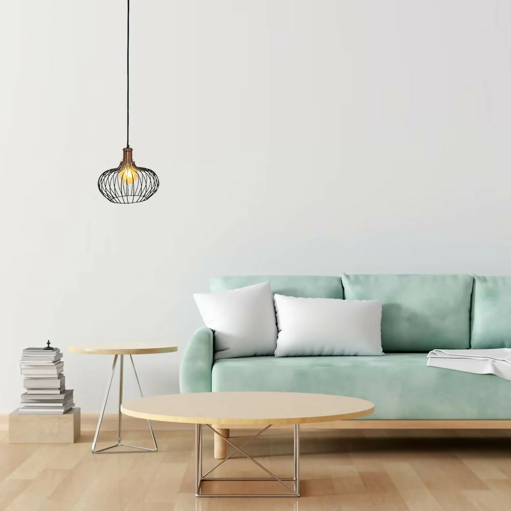 Lámpara de techo fabricada en tubería redonda, ideal para ofrecer un toque moderno a cualquier espacio. Se recomienda el uso de bombillo LED vintage.