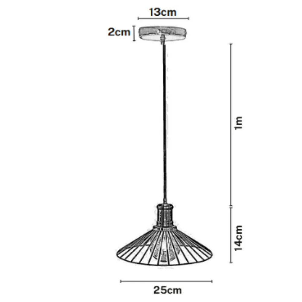 Lámpara de techo con diseño en rejilla decorativa, ideal para espacios residenciales, comerciales o industriales. Su estilo moderno con un suplemento de enchufe imperial y cable textil, la convierte en una pieza elegante y funcional.
