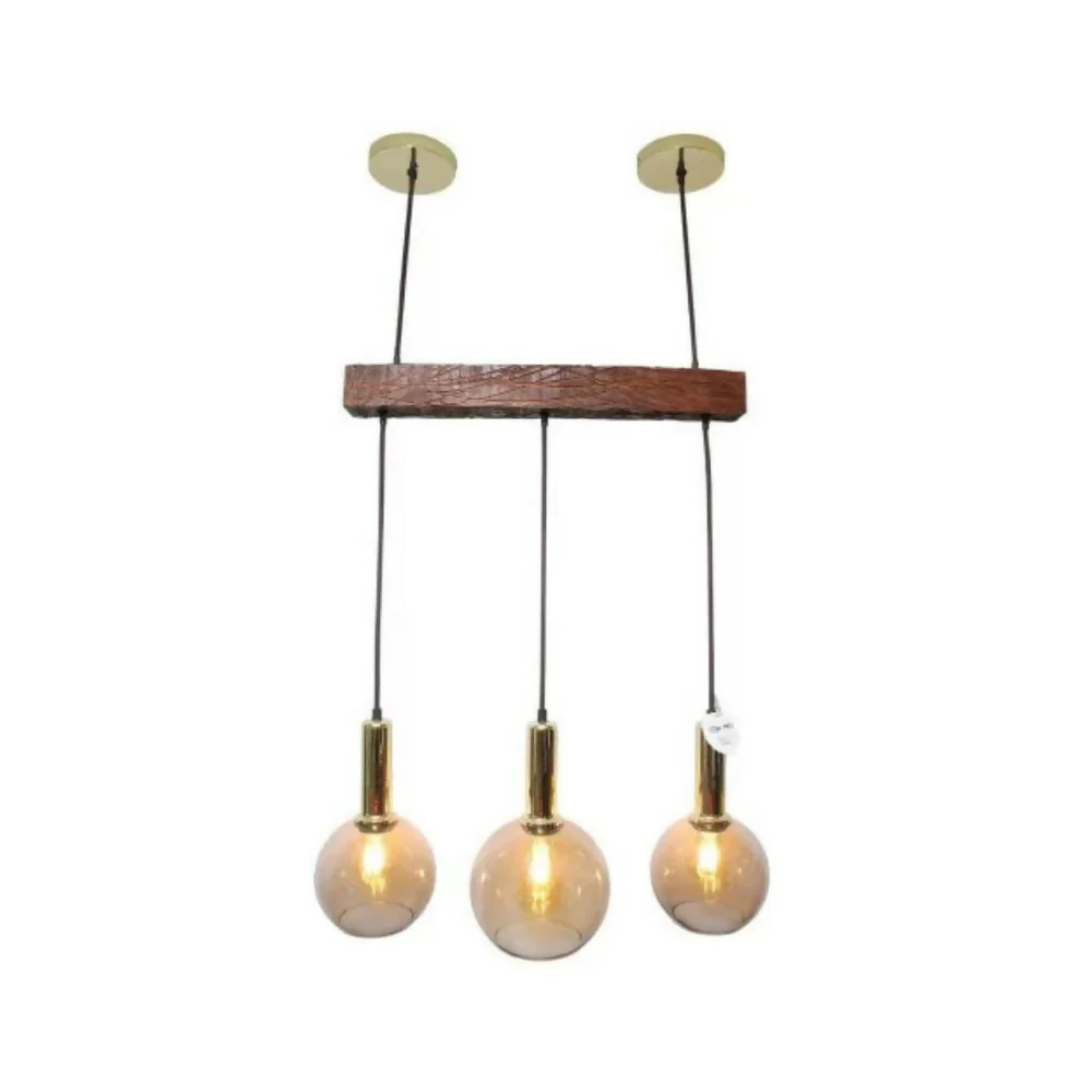 DESCRIPCION BASICA: Lámpara techo 3 luces. Bomba de cristal bricero B12 y B15. Acople largo PD217. Riel de madera. Fabricada en aluminio de alta pureza o lamina de hierro cold rolled. Cable encauchetado o textil 2×18. Base plana, con platina galvanizada de fijación, con polaridad a tierra. Socket de loza, recubierto con porta socket metálico, rosca E-27. 1 terminal plástica de 5 amperios. Se recomienda un bombillo Led, vintage (según la necesidad del cliente) Acabado según el requerimiento del cliente.