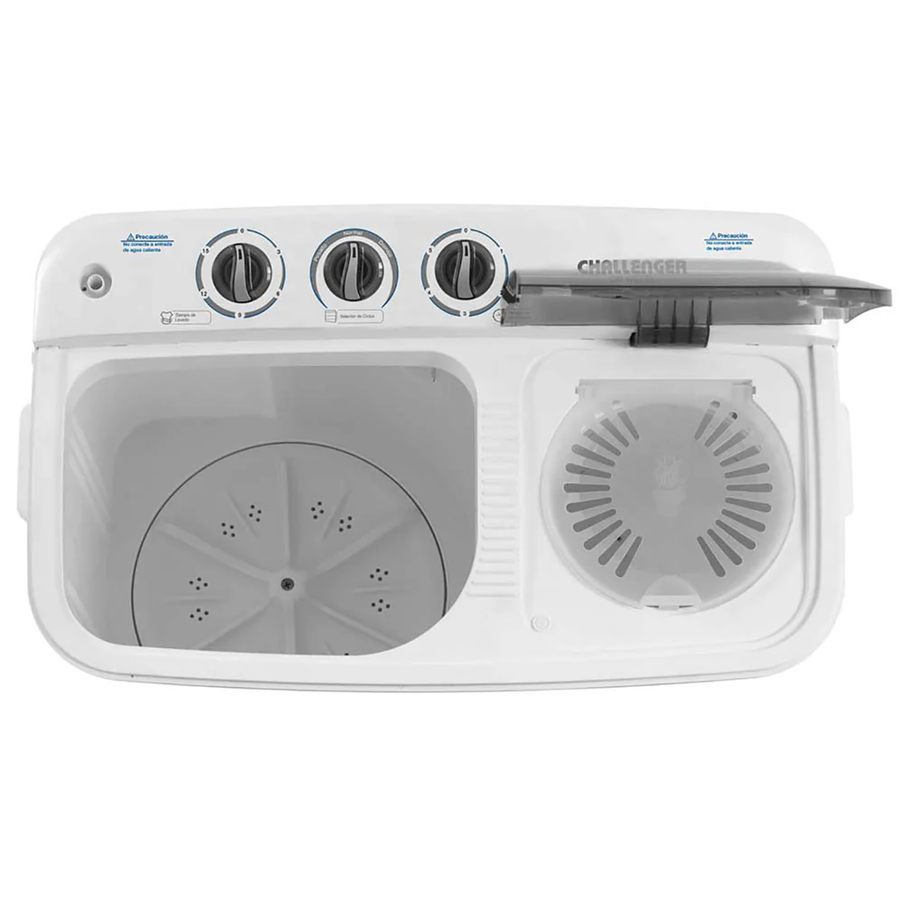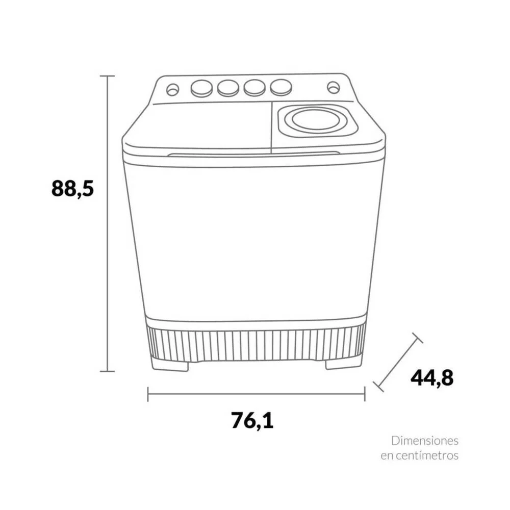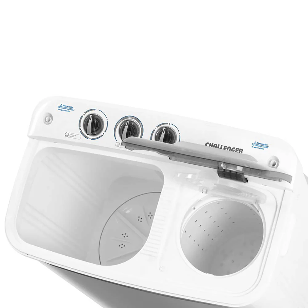 Lavadora semi-automática de 7 Kg. (15 lb) de capacidad, con 2 programas de lavado y un centrifugado, motores independientes para lavado y centrifugado al mismo tiempo.