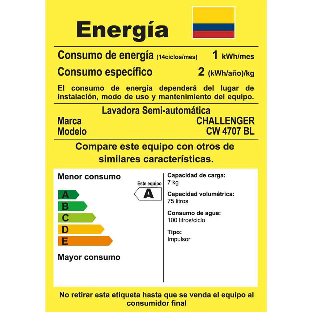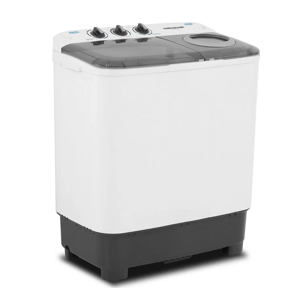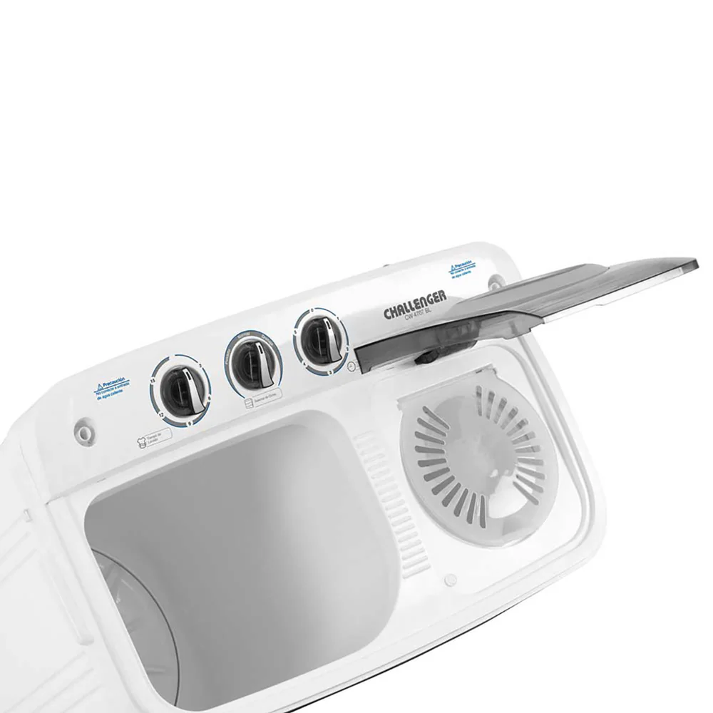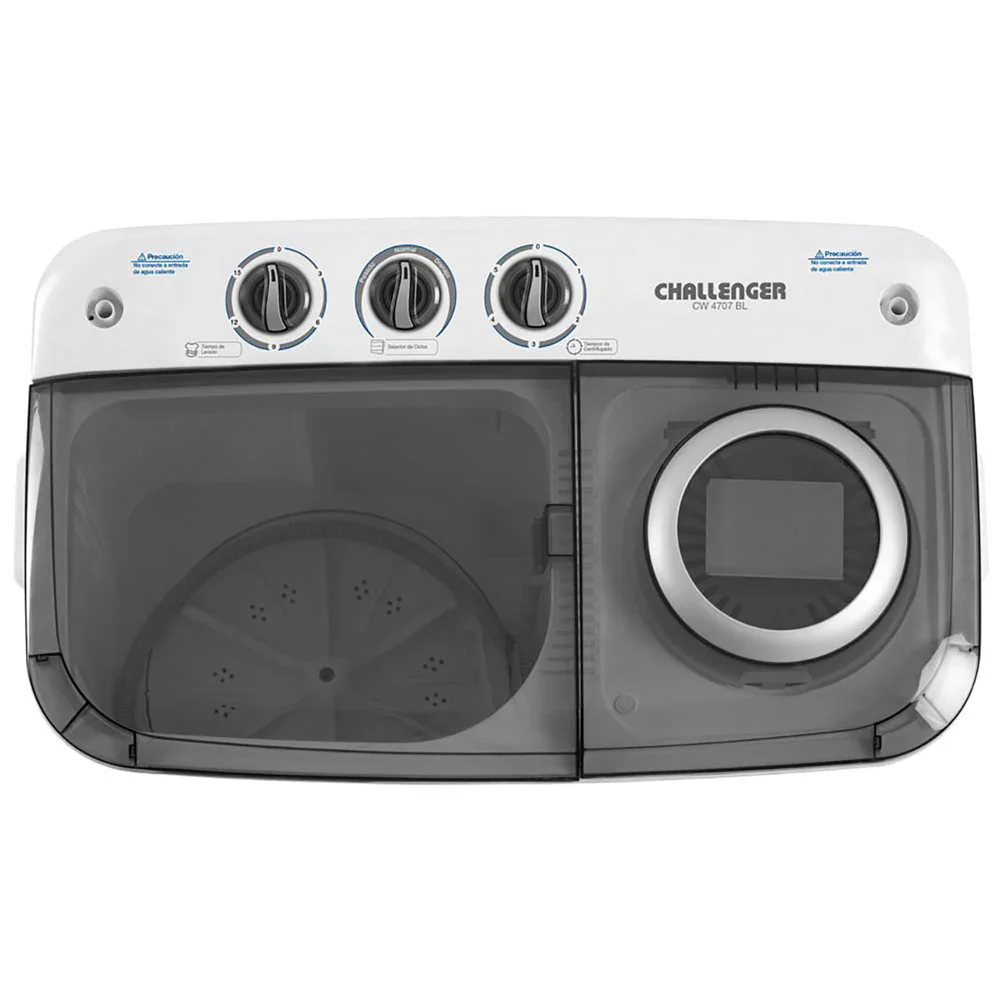 Lavadora semi-automática de 7 Kg. (15 lb) de capacidad, con 2 programas de lavado y un centrifugado, motores independientes para lavado y centrifugado al mismo tiempo.